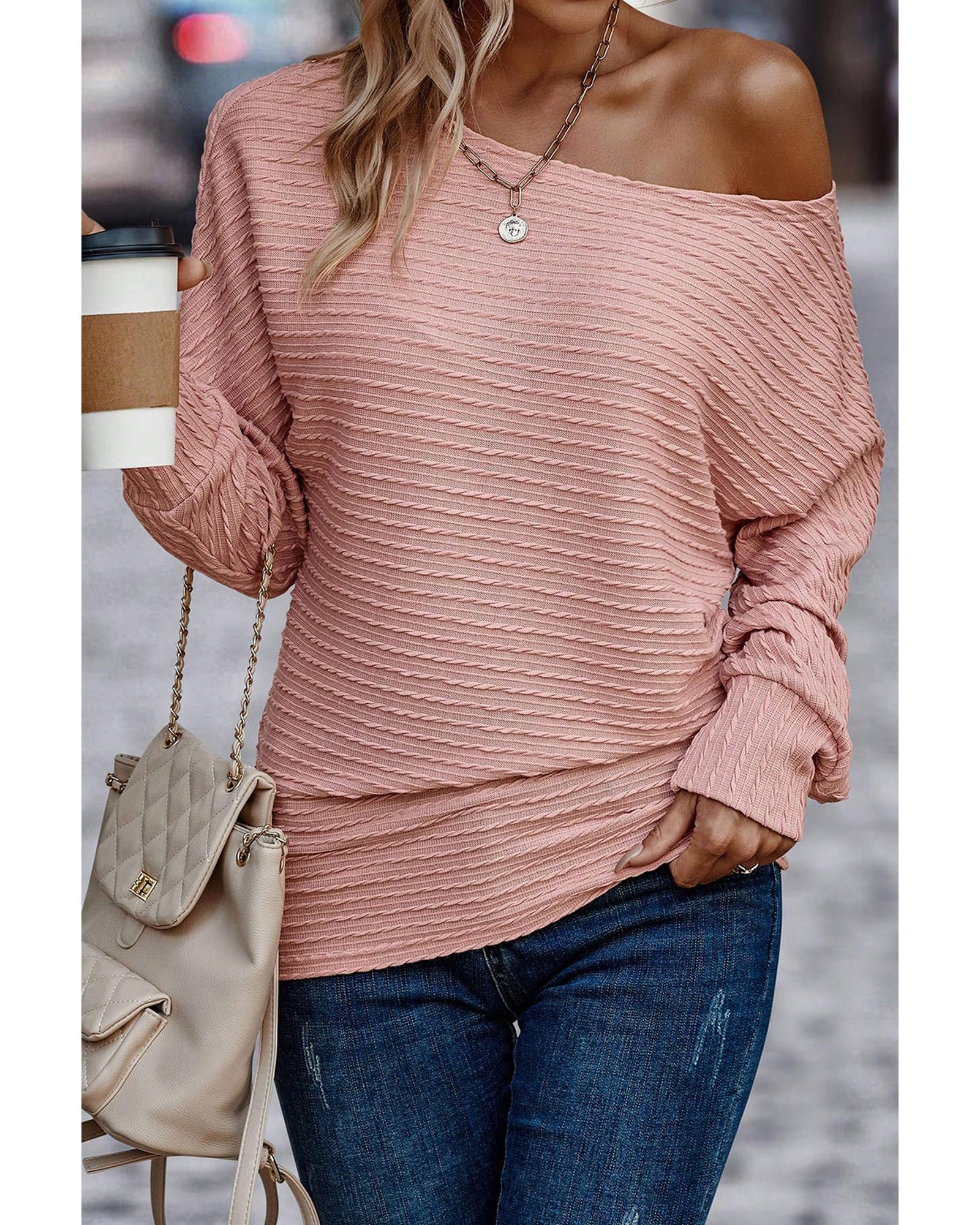 Dusty Pink Textured Knit Long Sleeve Top – M