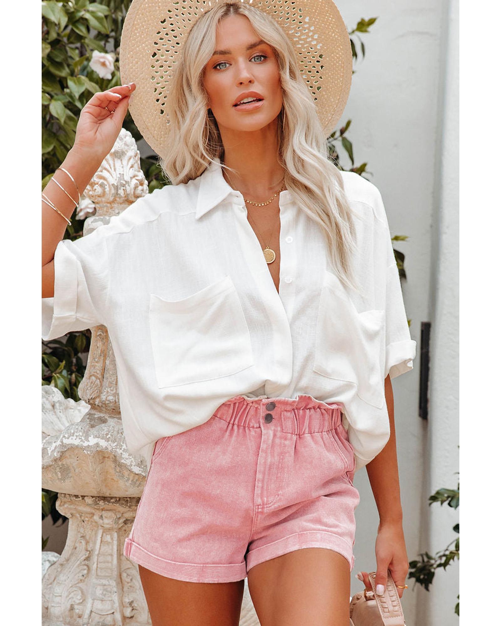 Dusty Pink Vintage Washed Frilled High Waist Denim Shorts – 12 US