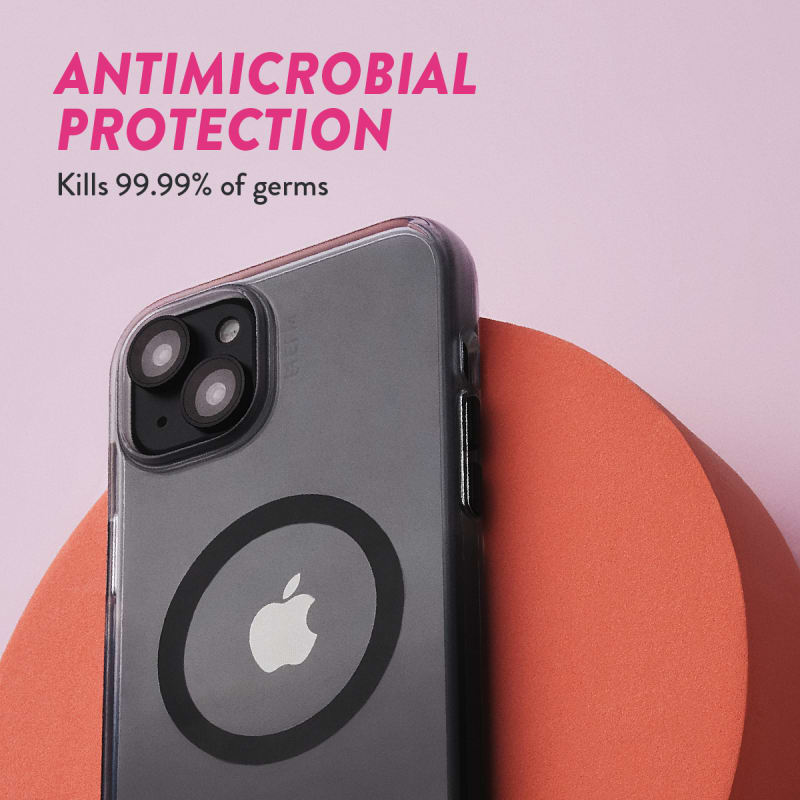 The clear or gradient design backplatee not only adds visual appeal but also features antimicrobial properties, UV and scratch resistance, and is made from recycled polycarbonate. It’s drop tested to 6M.