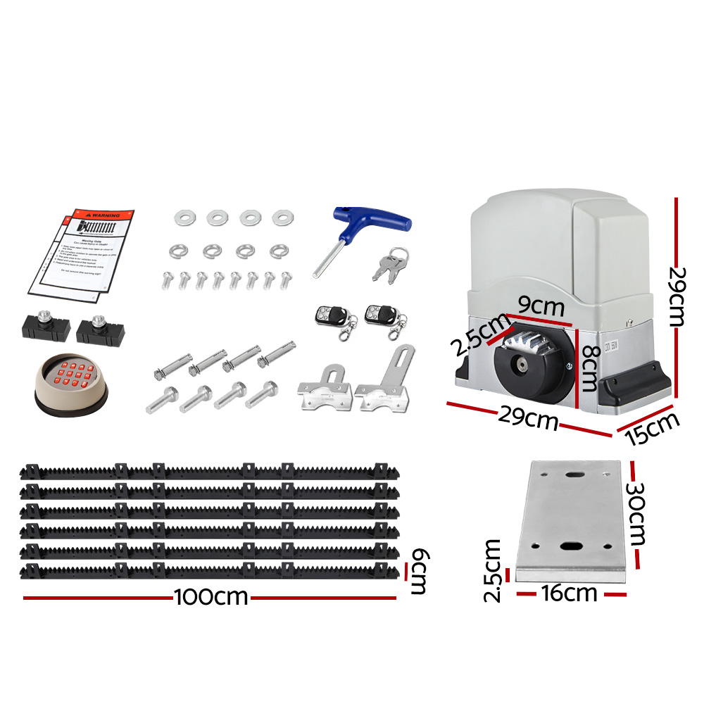 Electric Sliding Gate Opener 1200KG Auto Keypad Hardware Remote 6M