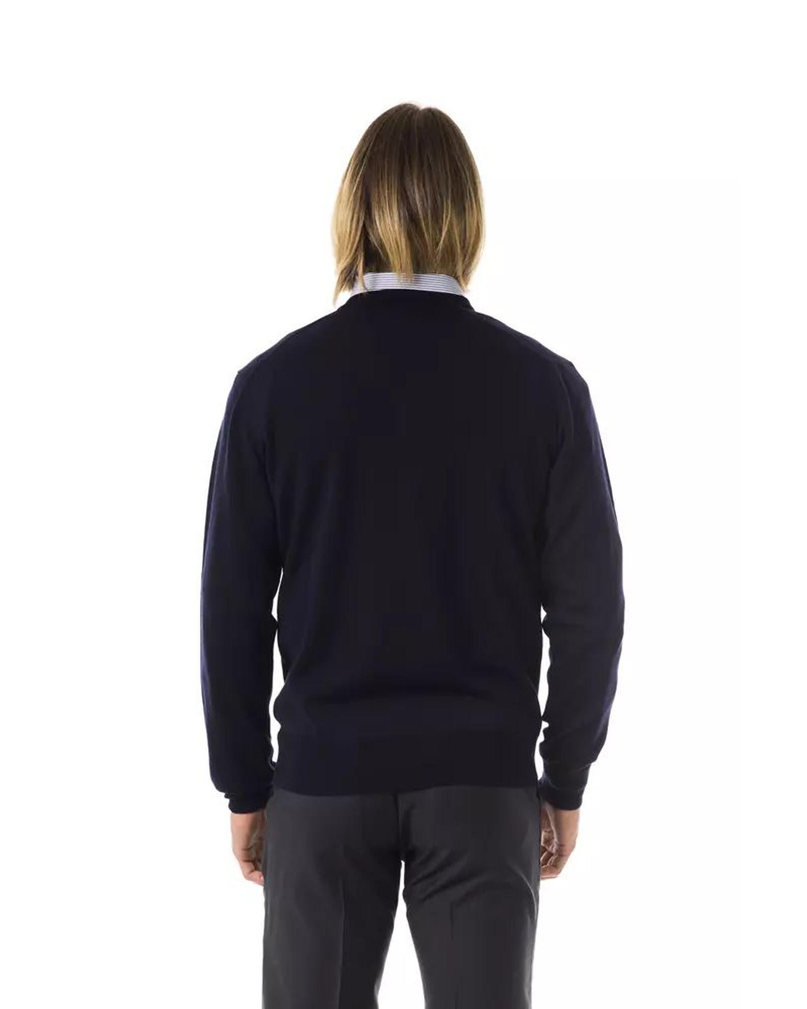 Embroidered V-neck Sweater in Extrafine Merino Wool S Men