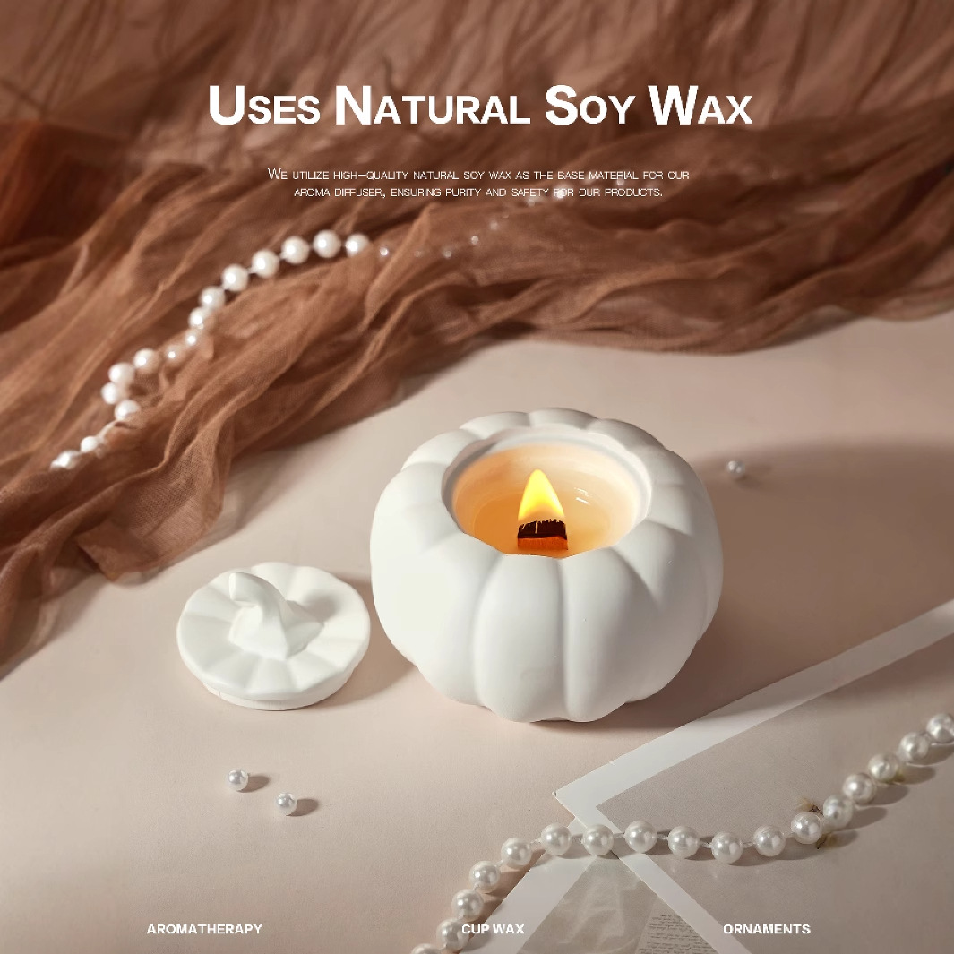 (English Pear Freesia)Ceramic Pumpkin Candle with Lid – Home Decor and Gift Ideas