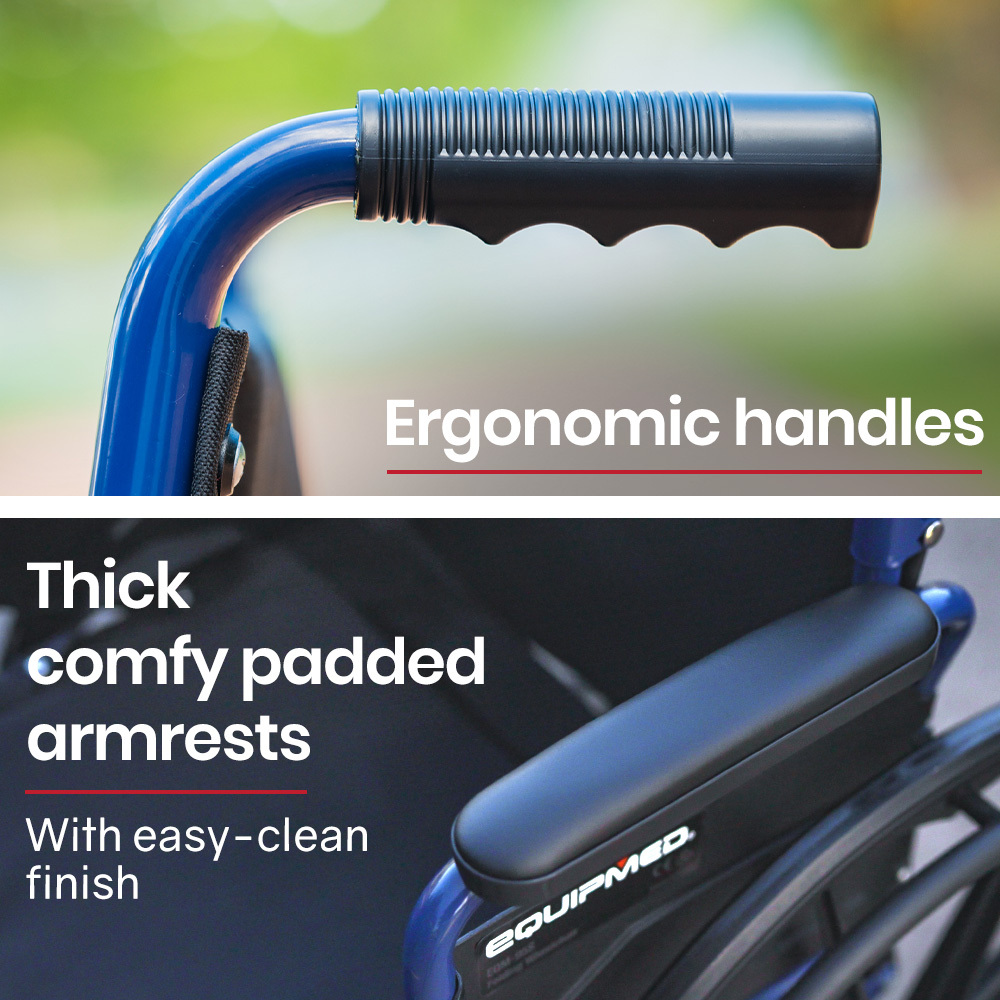 EQUIPMED Portable Wheelchair 24 Inch Folding Lightweight Wheel Chair,136kg Capacity Mobility. Blue