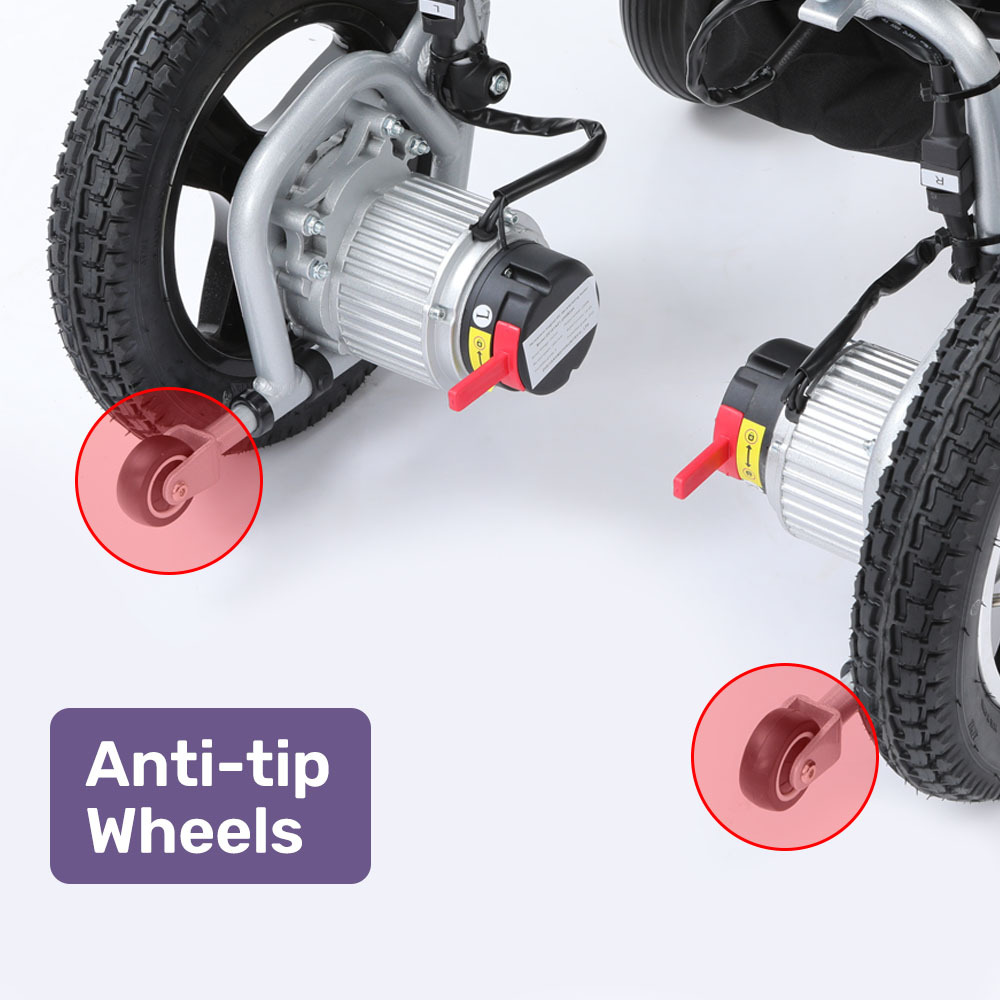 Safety belt, anti-tip wheels, and a rear-drive design enhance stability and peace of mind.