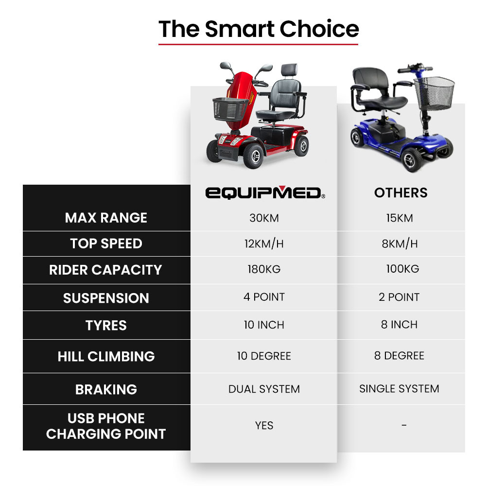 If youre seeking a smart solution for your transportation needs, the Equipmed VentureCruise Series Electric Mobility Scooter will surely fit the bill.