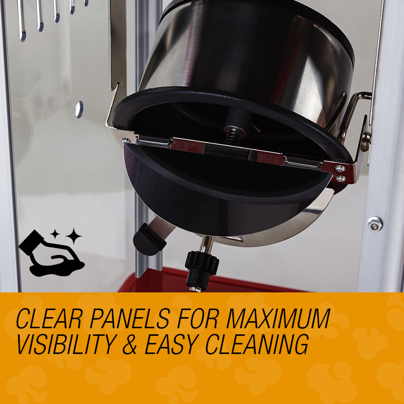 With 310W of heating power, this appliance features an illuminating light that gives a real cinema feel. It has a transparent casing and access hatch so you can see all the popping action as it’s happening. Simply place the raw popcorn into the stainless steel kettle and watch fresh, hot popcorn burst out of the flip lids just like at the theatre! Then use the crank handle to load up your bowl – ready for an authentic cinematic experience in your lounge room.
