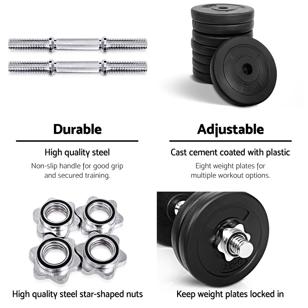 Everfit 25kg Dumbbell Set Weight Plates Dumbbells Lifting Bench