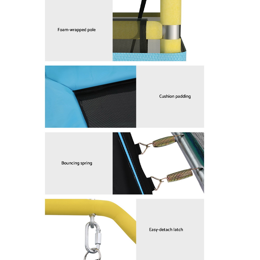 Foster your children’s love of exercise with an Everft 6ft Trampoline. The trampoline is designed for children aged 3 to 8 years old and has a 2-in-1 design for double the fun: you can use it as a trampoline or as a jumping swing. Made from marine-grade hot-dip galvanized steel, the frame is incredibly strong and resistant to corrosion. The base is made from an anti-graze mat that is UV-resistant and is surrounded by cushioned padding. Posts are foam-wrapped for safety, and the entire trampoline is enclosed in a safe mesh netting with a zipped entrance. Heavy-duty ropes will hold your children as they jump and swing the day away. Your children can enjoy bouncing in safety and comfort any time with the Everfit 6ft Trampoline.
