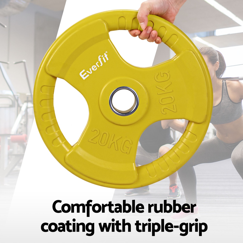 For durable and reliable fitness equipment for weightlifting, look no further than the Everfit Training Barbells. Designed to fit most olympic weight plates, the bar is useful for home gym junkies looking for a flexible weightlifting workout. The handles are made from heavy-duty cast iron material while the pole is made from A3 alloy steel, making it durable and long-lasting. The pole features diamond knurling for a non-slip grip throughout your entire workout. With a high weight capacity of 80kg, you’ll be able to push your body to the limit. The weight plates are constructed from heavy-duty cast iron and are designed to be sturdy and tough for all your exercise needs. The plates are covered in a tough rubber coating and feature a three-hole grip for easy handling. The weight plates are simple to use and compatible with most bars, making them versatile for use with dumbbells, barbells, or on their own. A handy weightlifting tool, they can be used for exercises for weight loss, strength training, endurance training and improved cardiovascular performance. Whether you are a beginner or an experienced lifter, Everfit Weight Plates provide a reliable and efficient way to achieve your fitness goals.