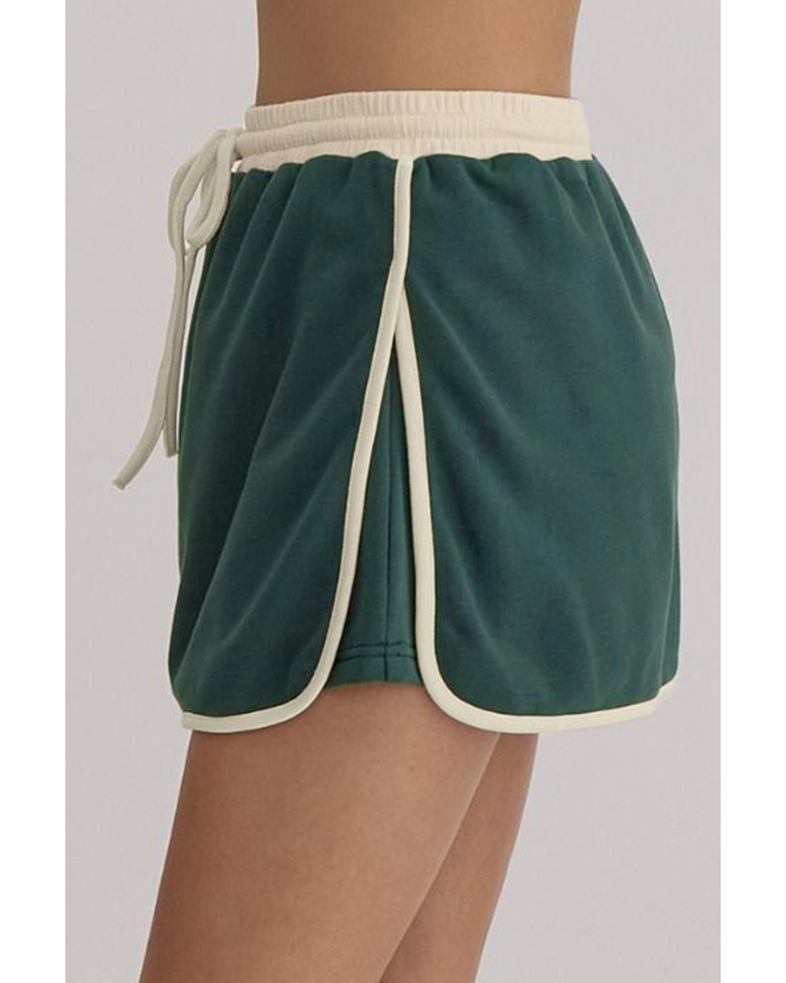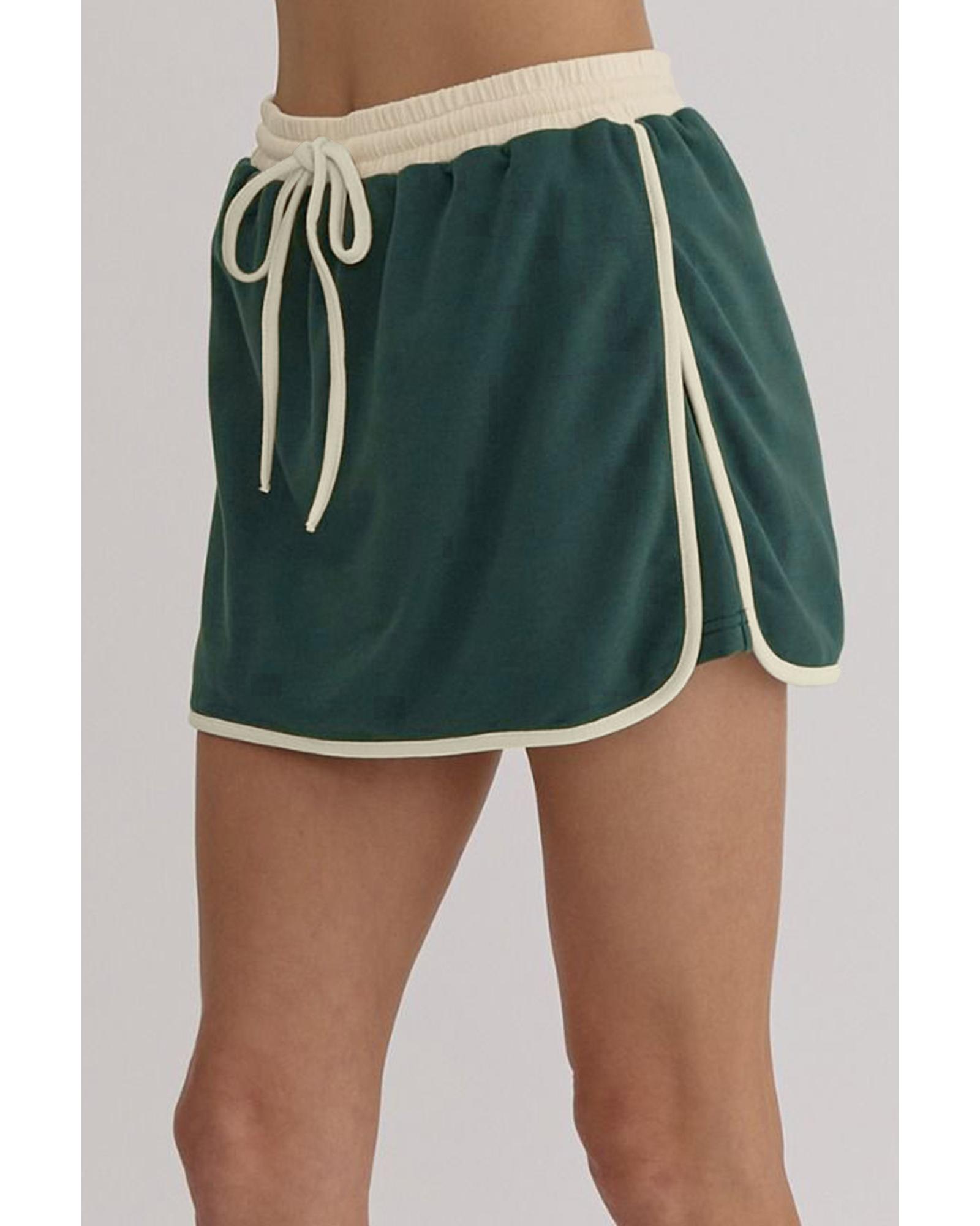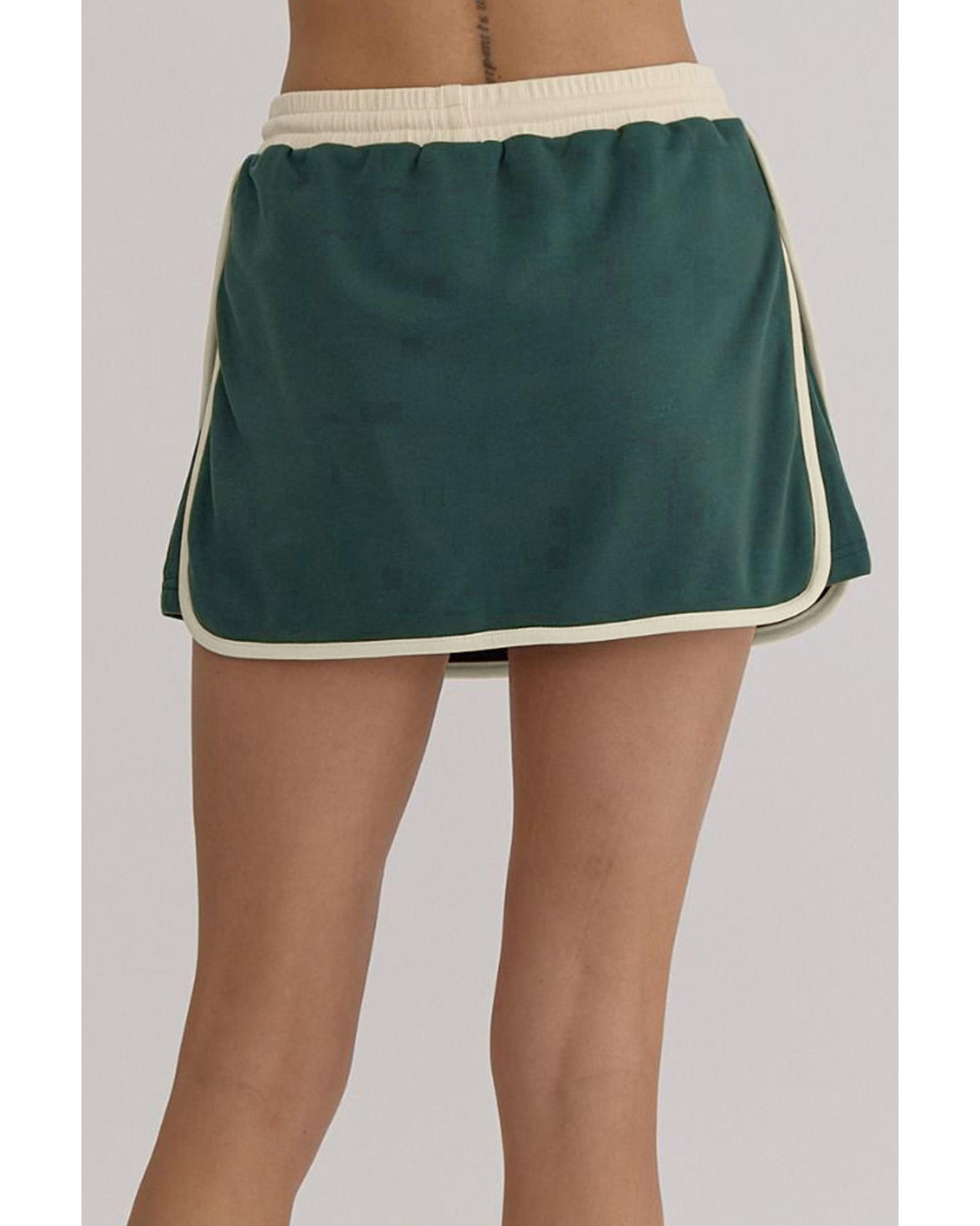 Evergreen Color Contrast Loose Pullover and Lace-up Waist Skort Set – L