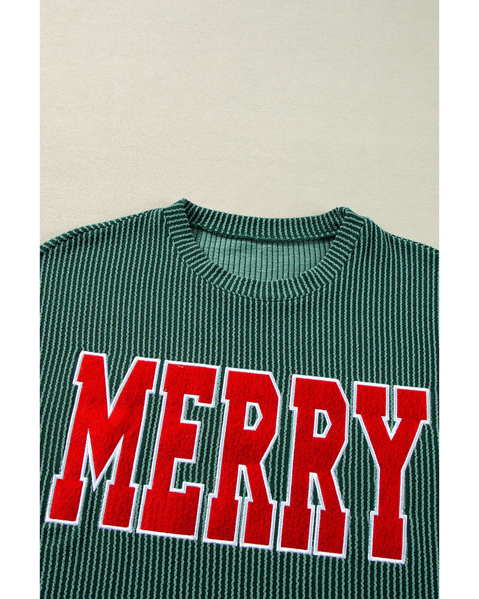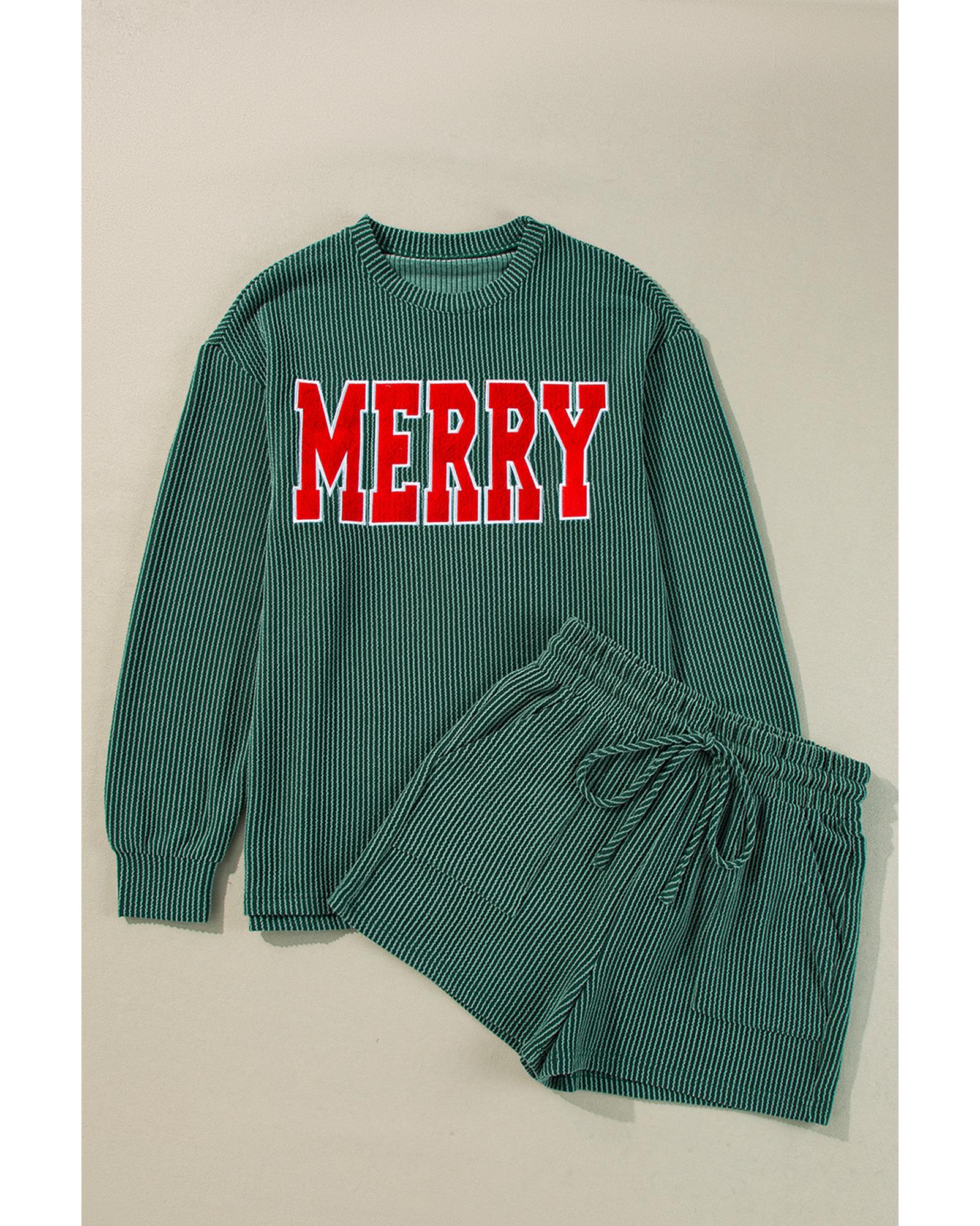• Evergreen Corded MERRY Graphic Long Sleeve Top and Shorts Set