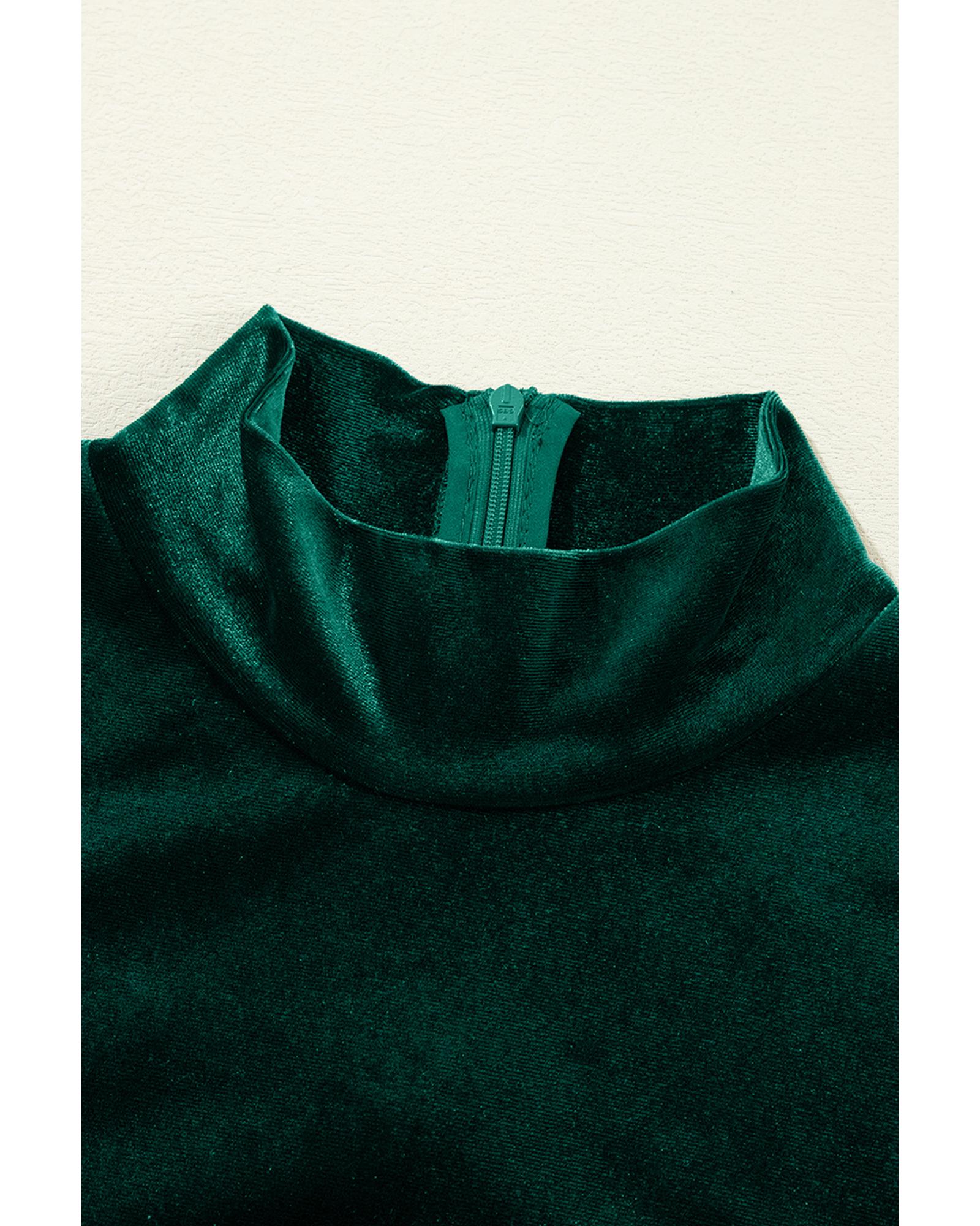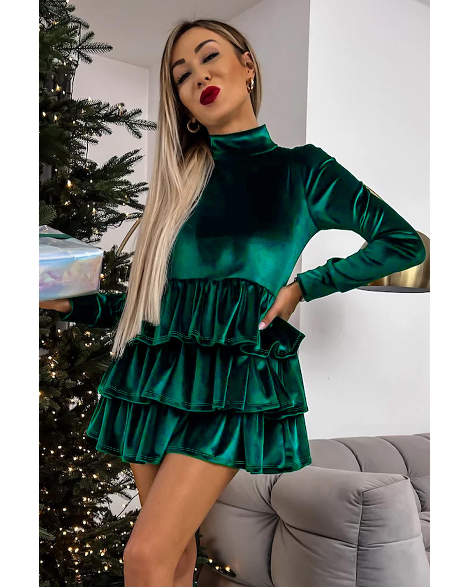Evergreen Velvet High Neck Tiered Ruffle Mini Dress – XL