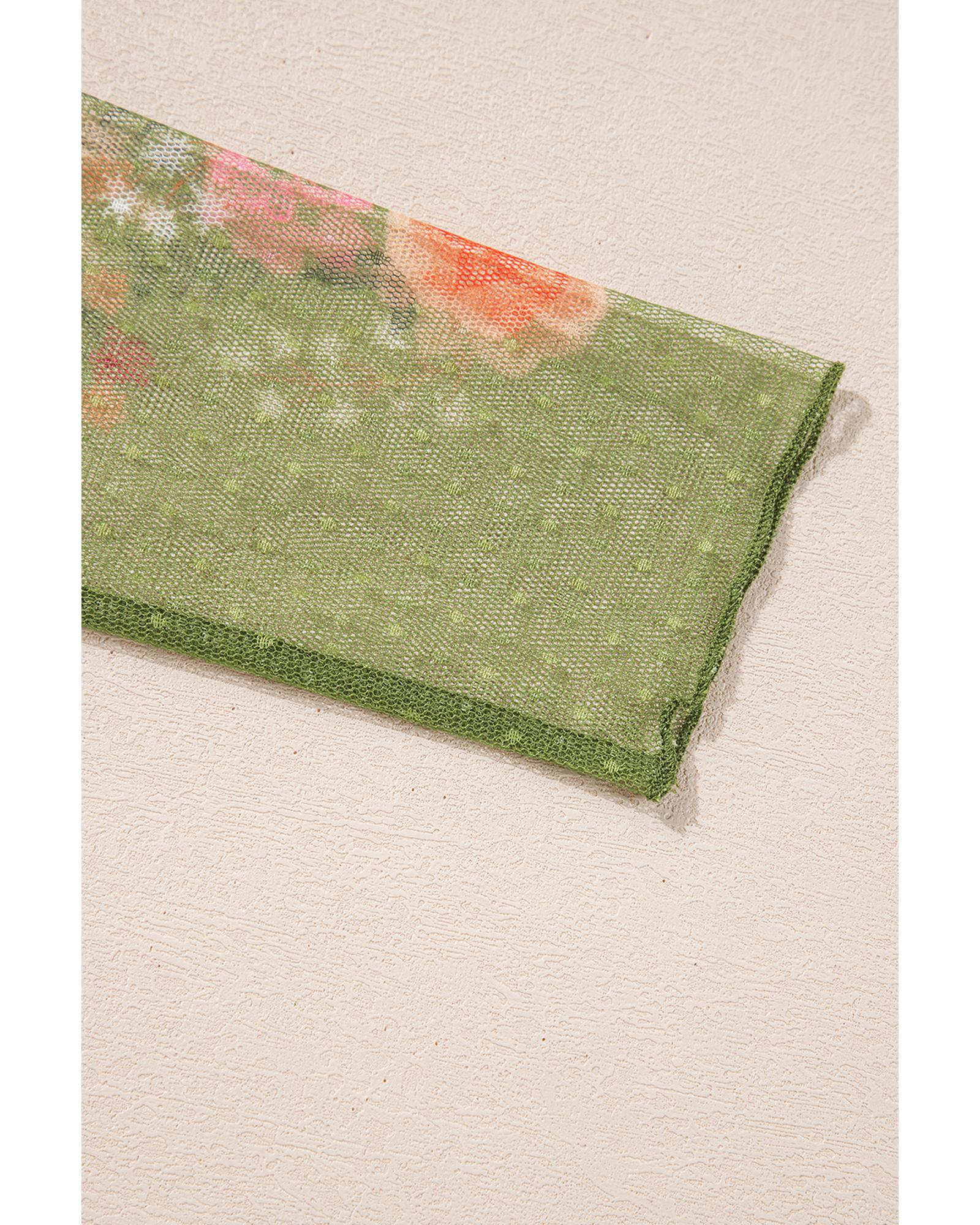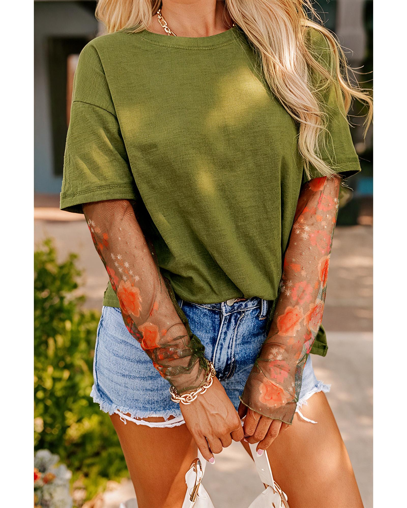 - Fern Green Faux Two Piece Floral Long Sleeve Patchwork Tee