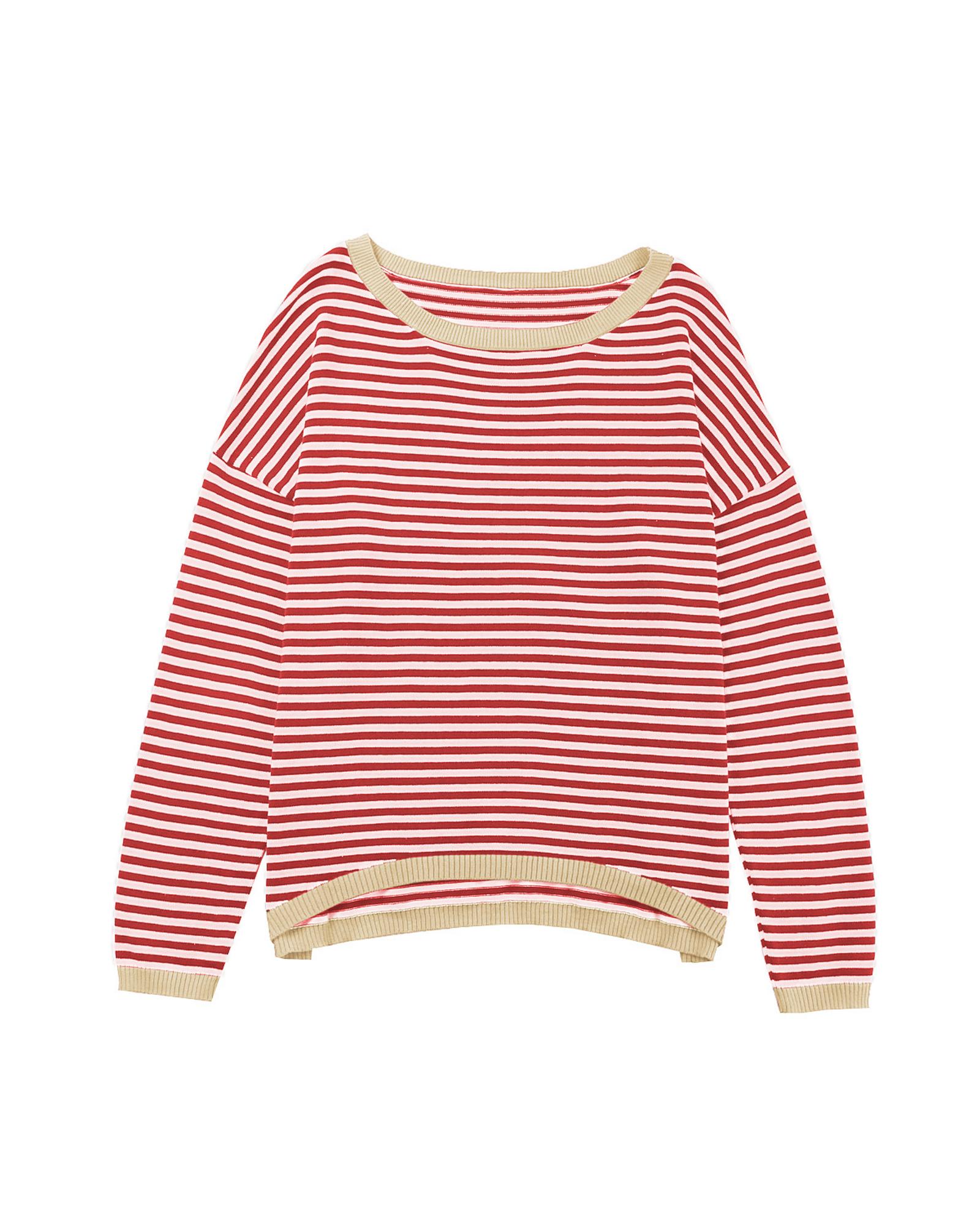 - Fiery Red Contrast Trimmed Striped Drop Shoulder Sweater
