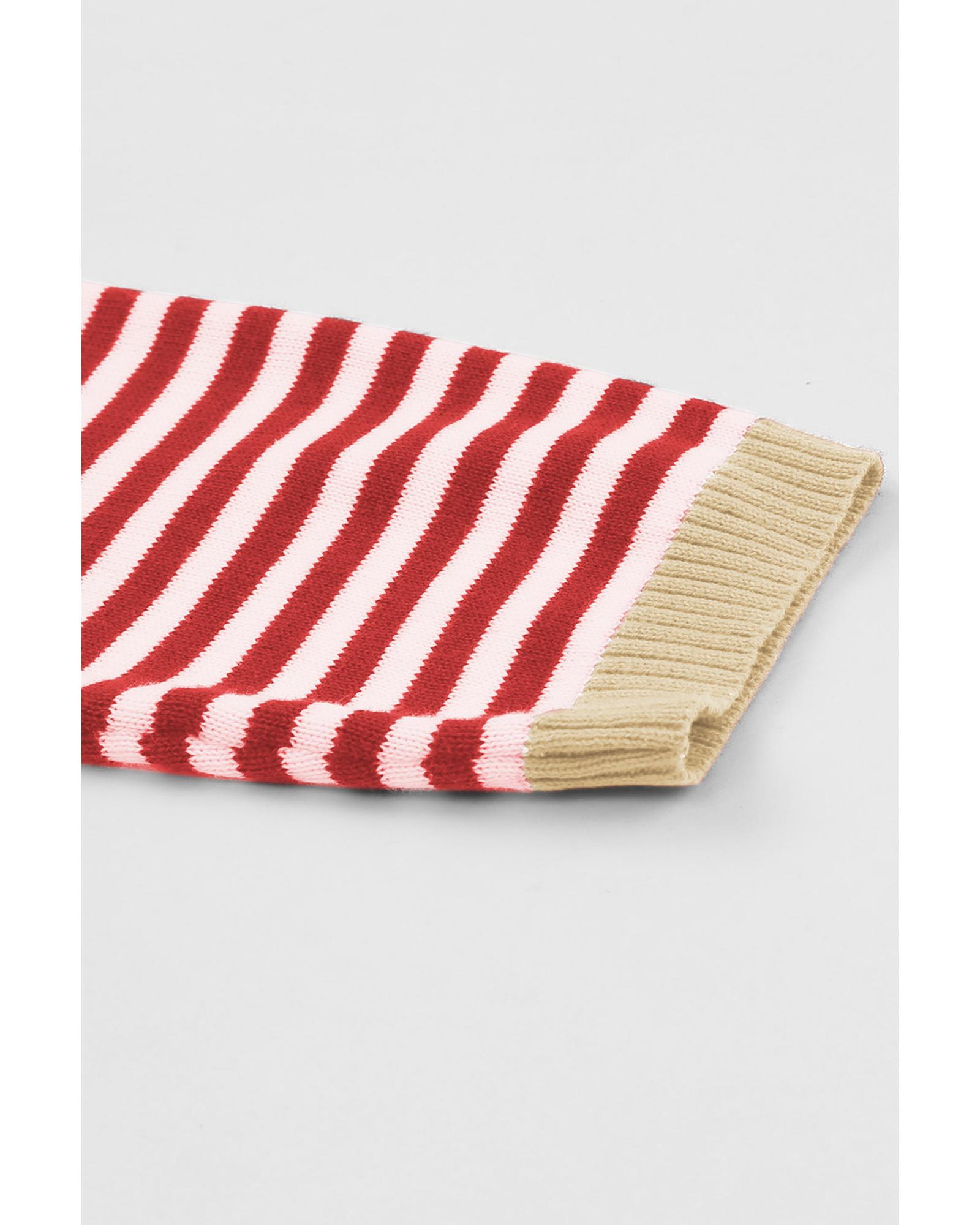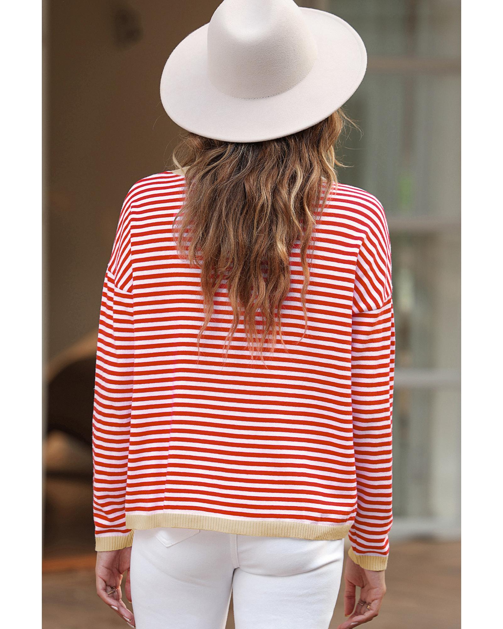 - Fiery Red Contrast Trimmed Striped Drop Shoulder Sweater
