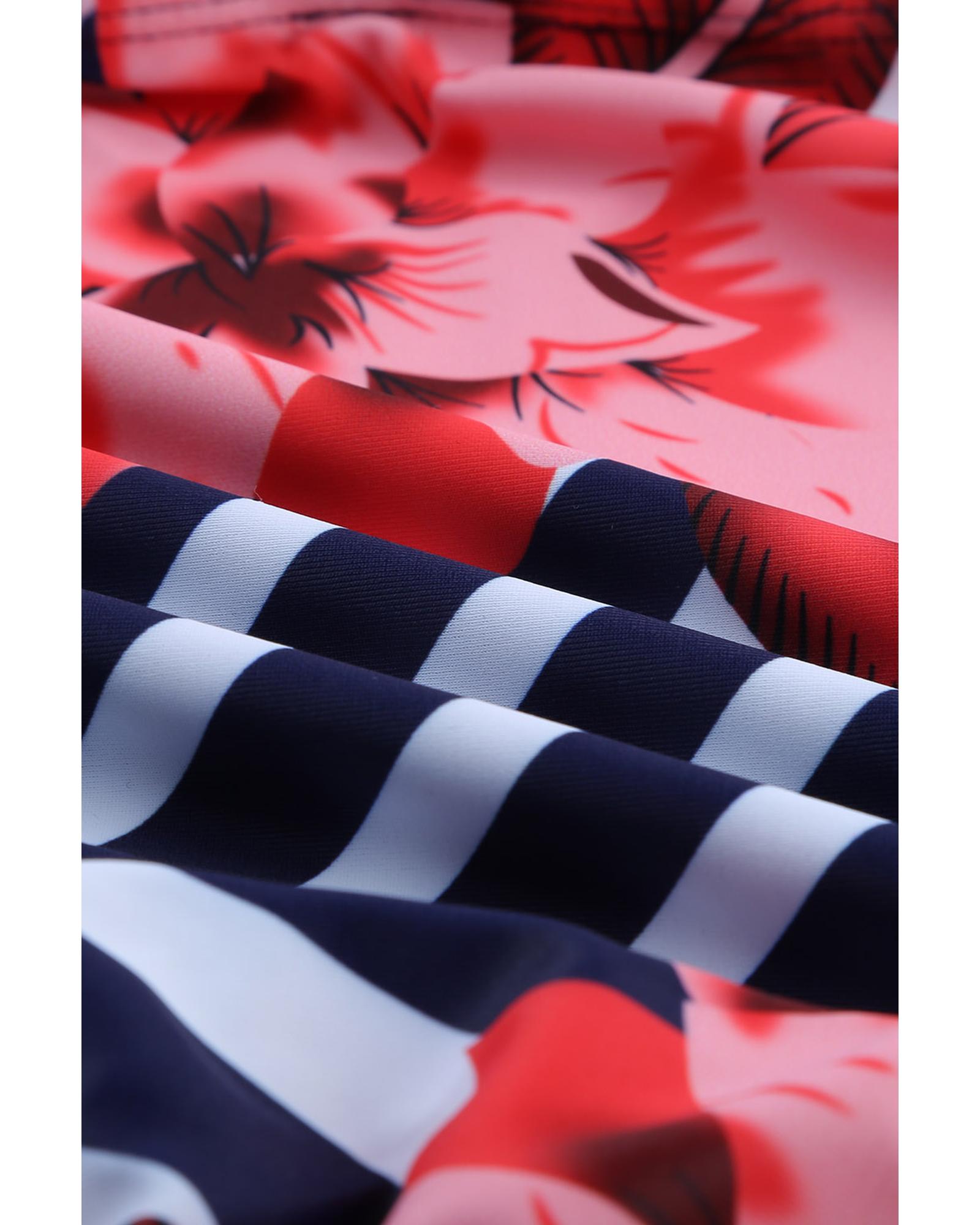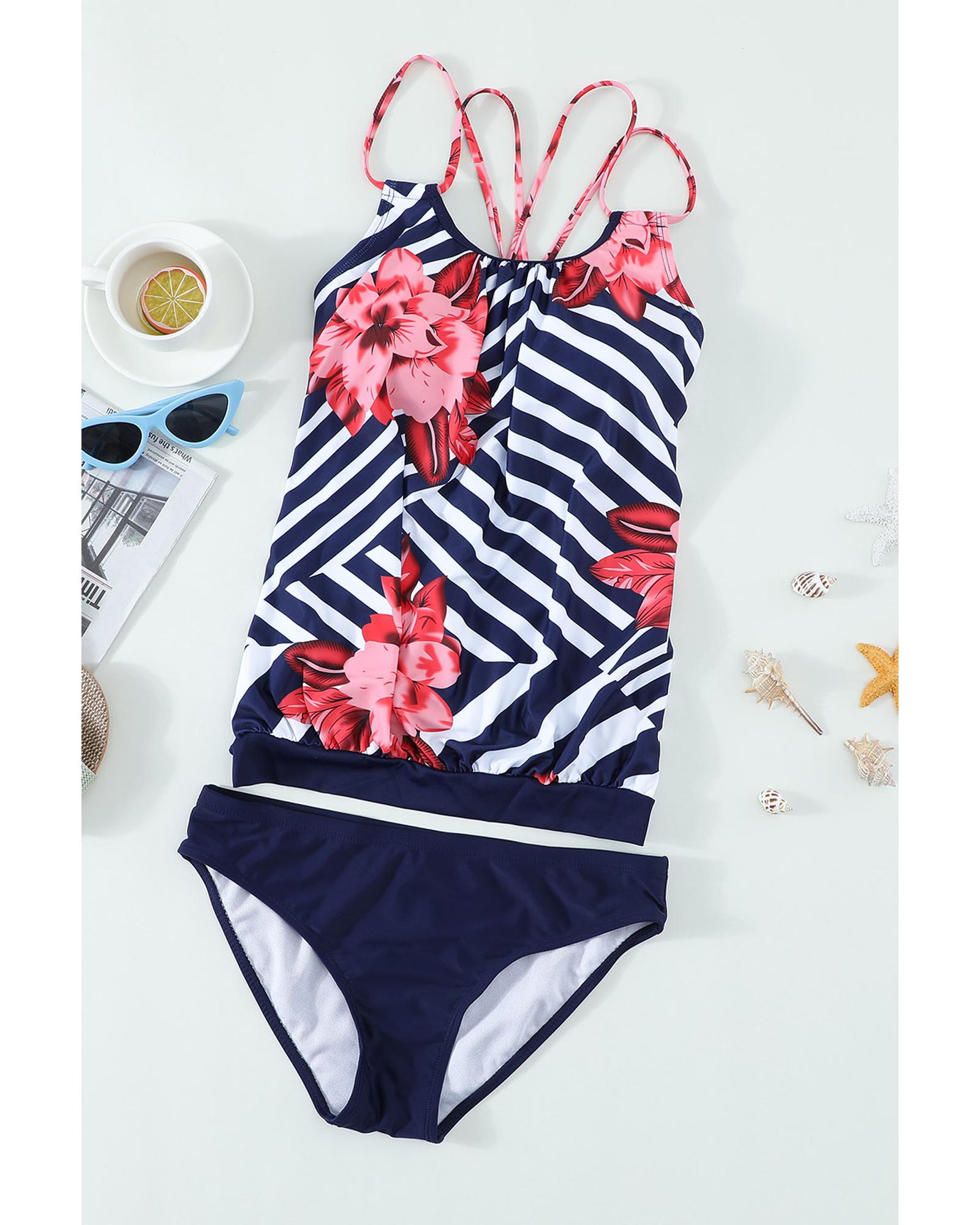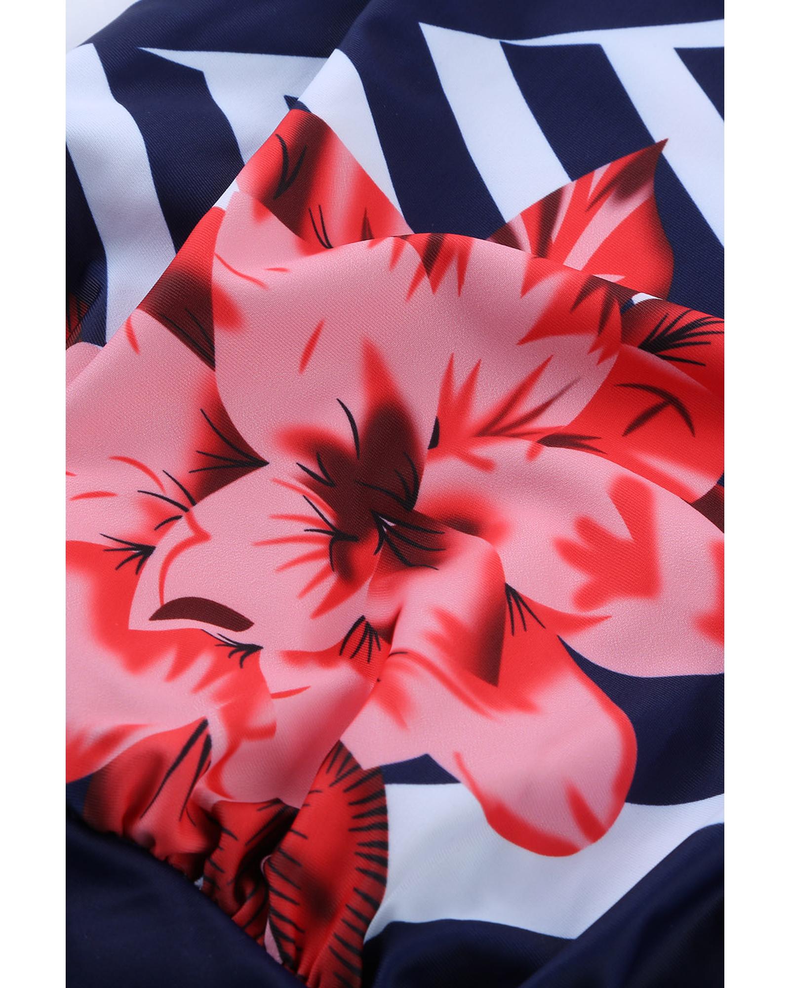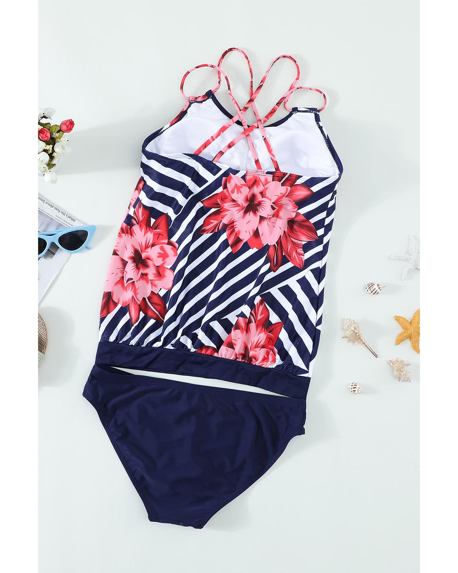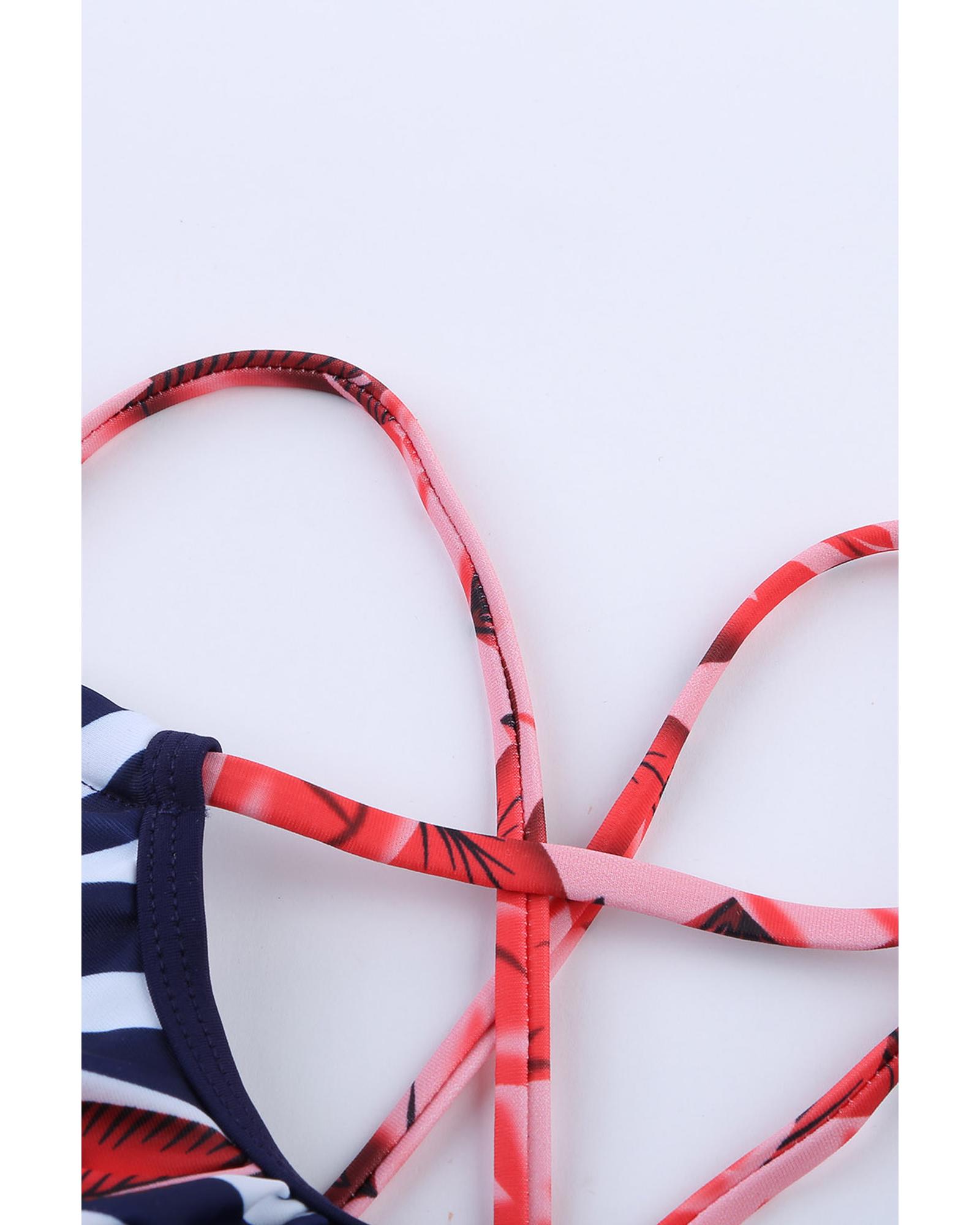 Fiery Red Floral Print Criss Cross Hollow-out Tankini Swimwear – M