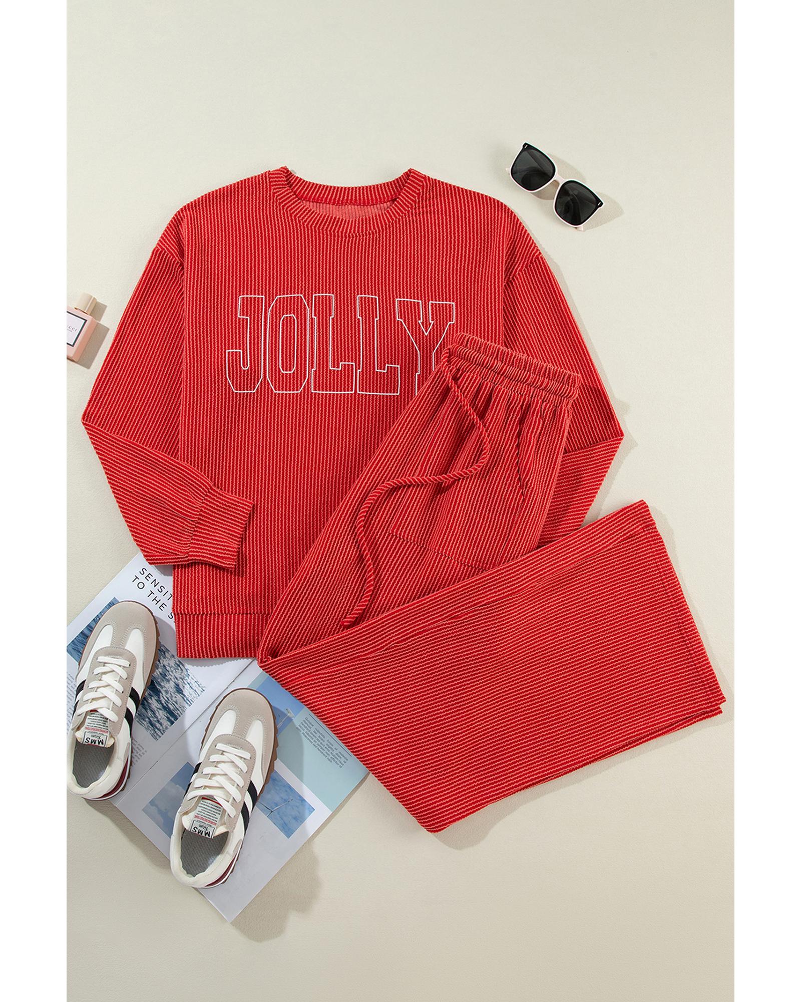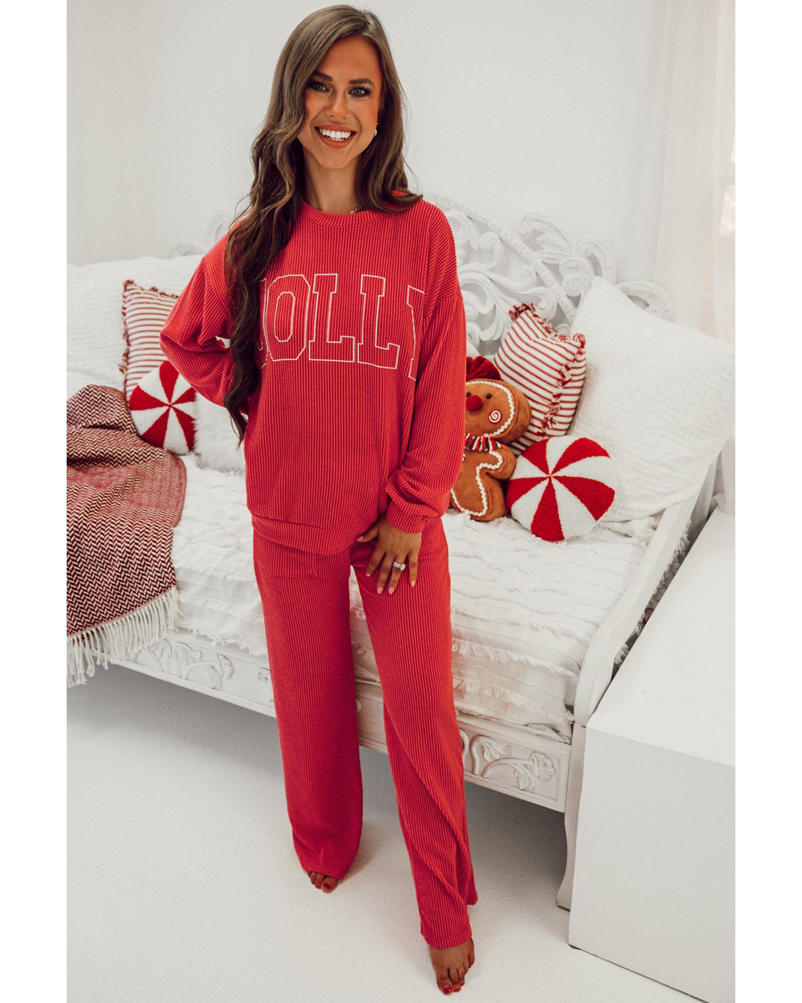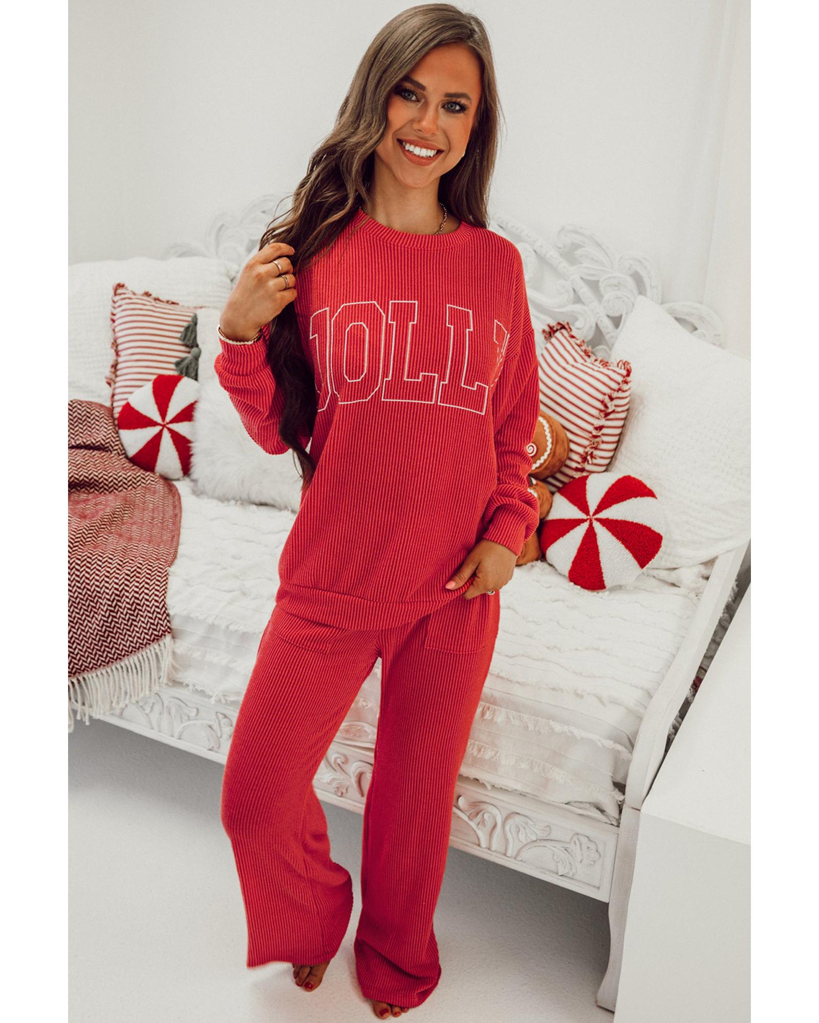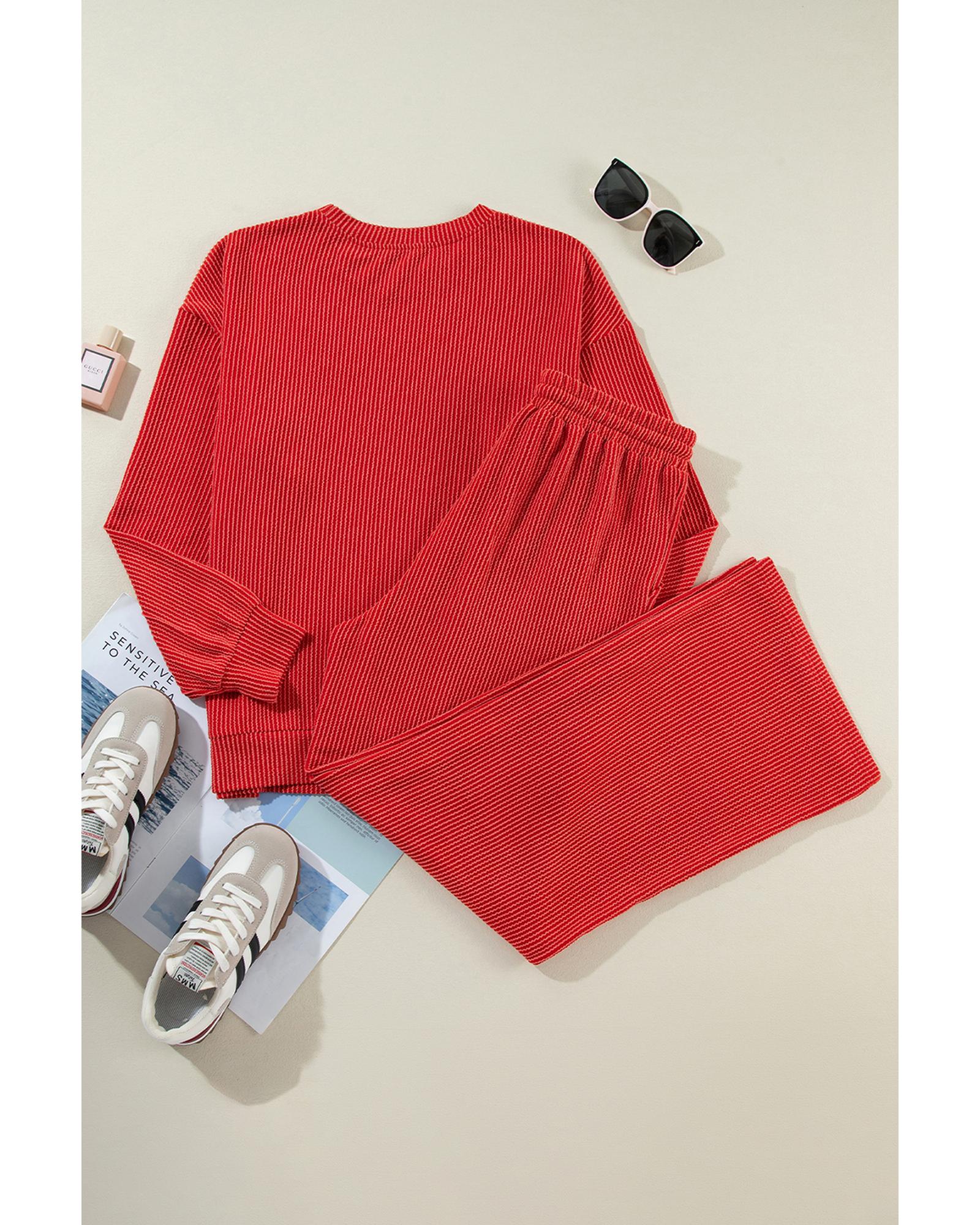 Fiery Red JOLLY Corded Long Sleeve Top and Pockets Pants Set – M