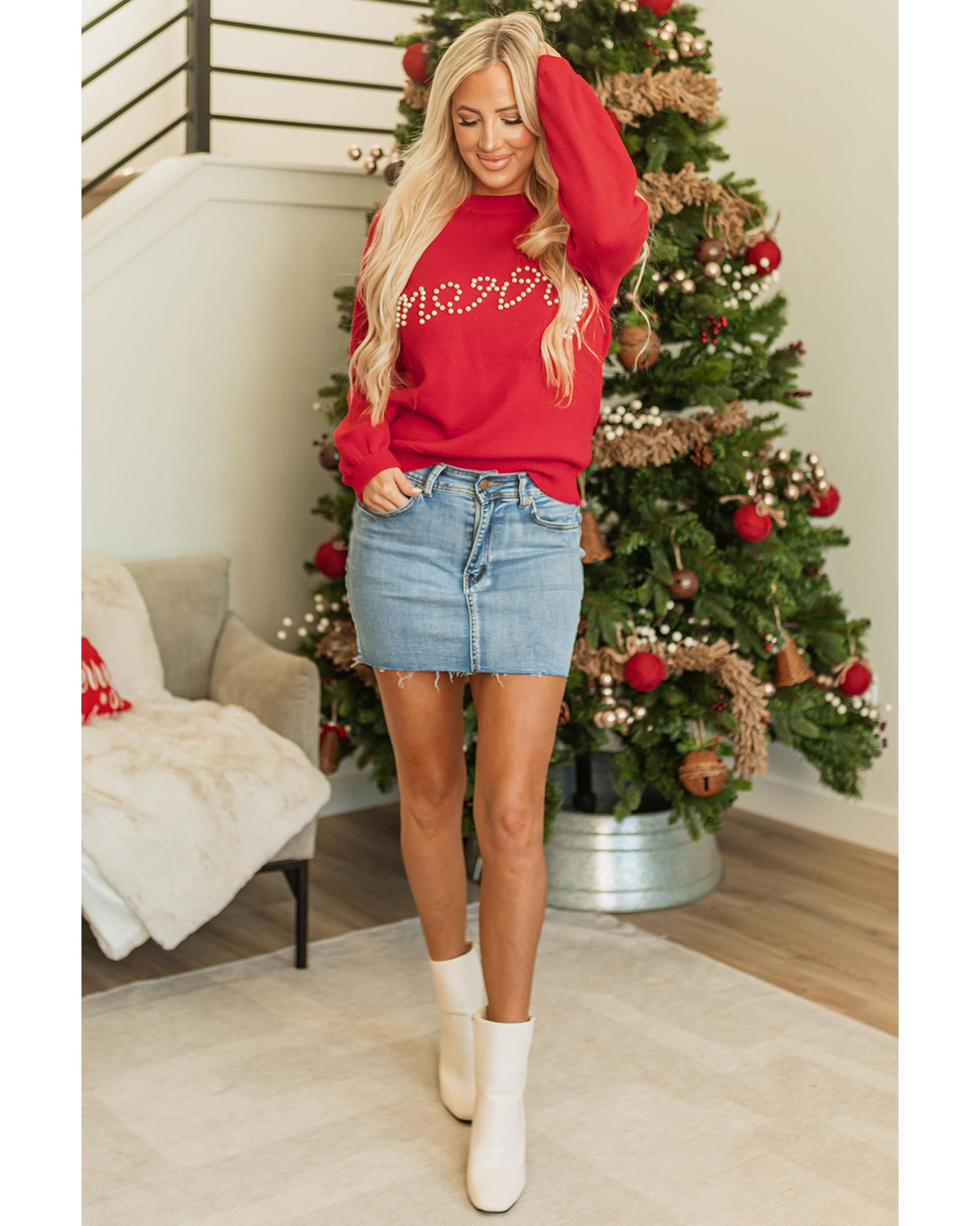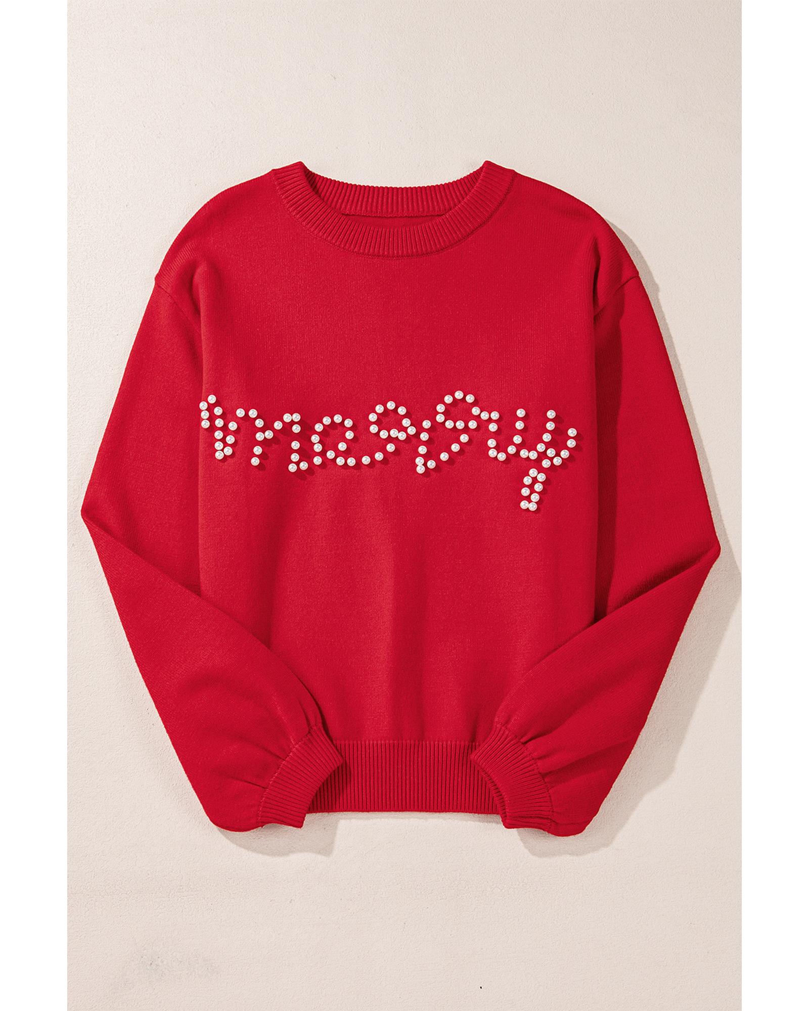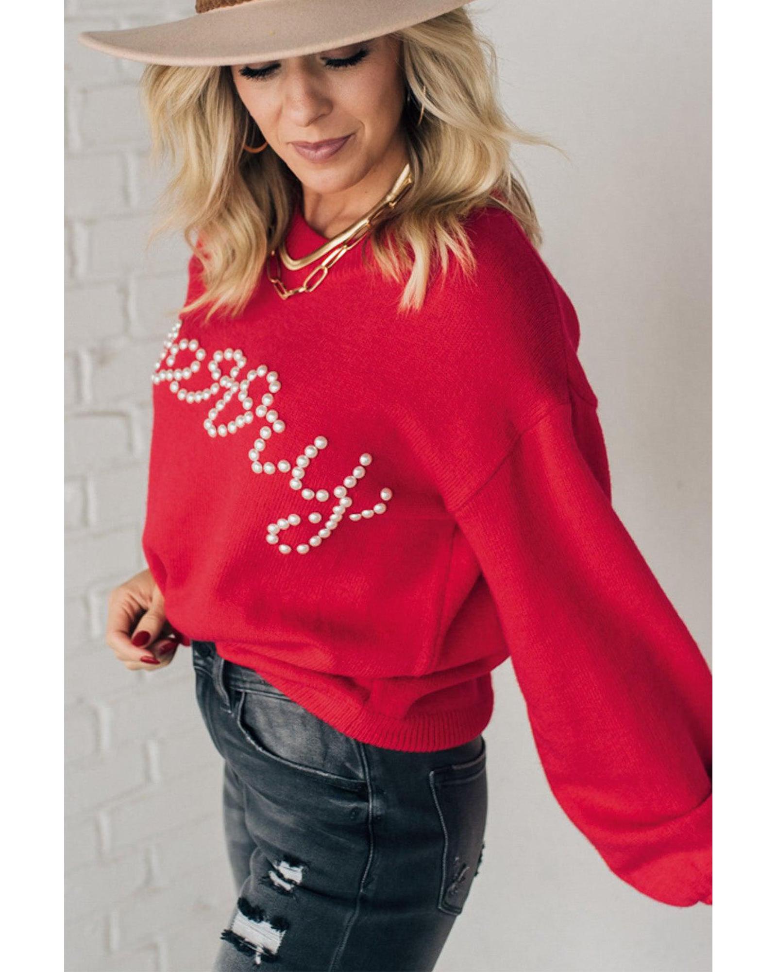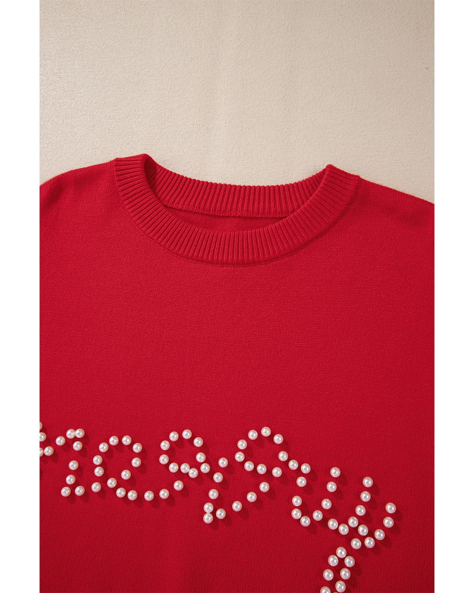 Fiery Red Pearl Beaded Merry Casual Sweater – M