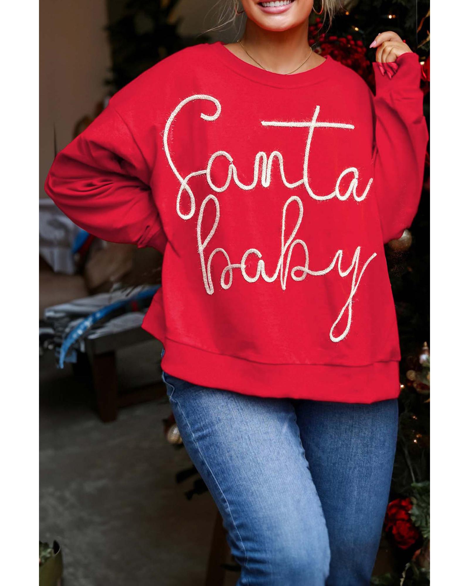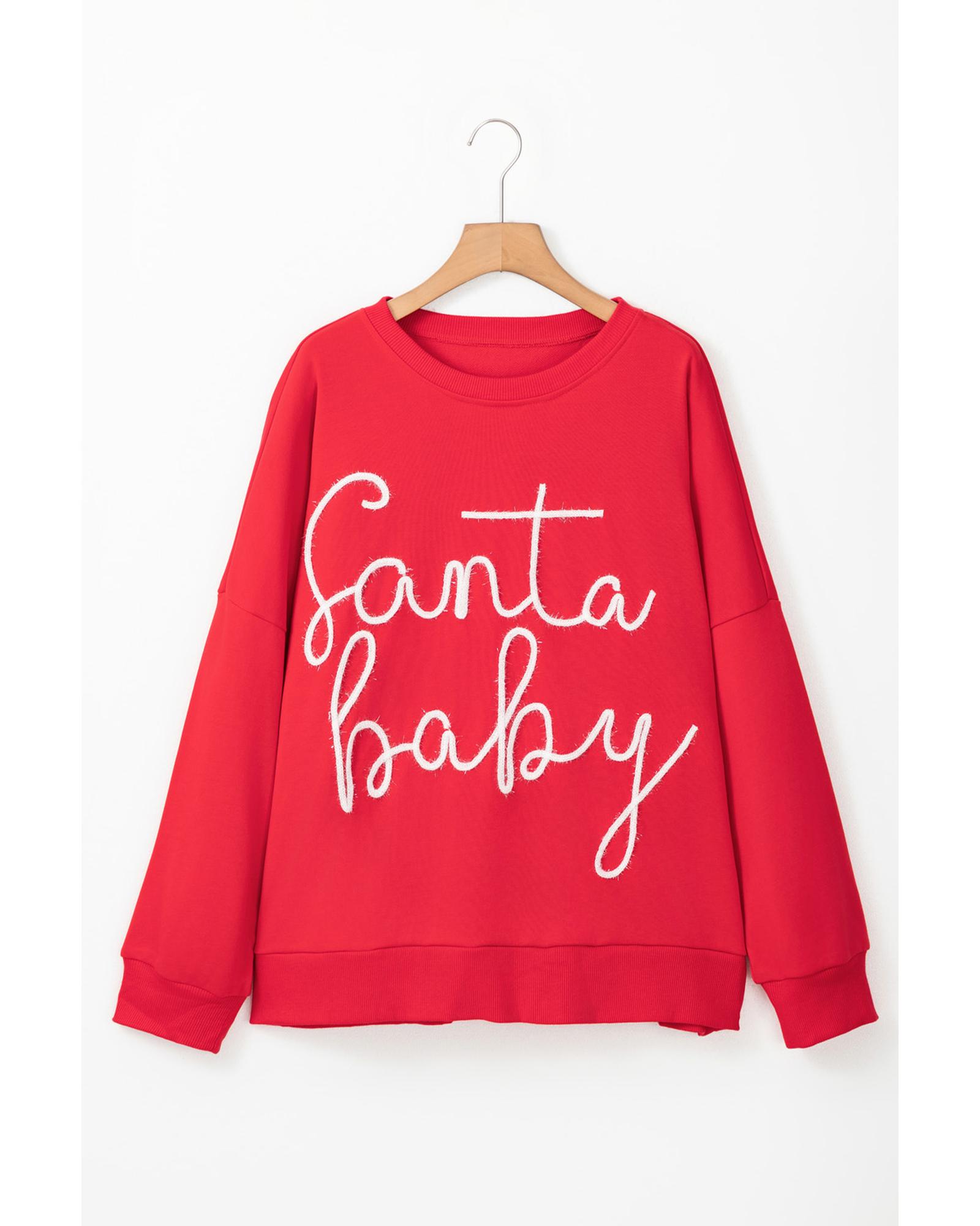 Fiery Red Plus Size Santa Baby Tinsel Crew Neck Sweatshirt – 1X
