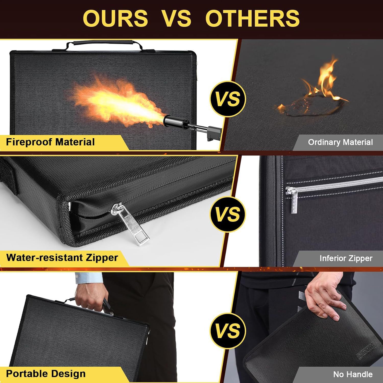 - Fireproof & Waterproof Protection: Made from advanced, SGS-tested fireproof and waterproof silicone-coated material to protect your documents from unforeseen disasters.
