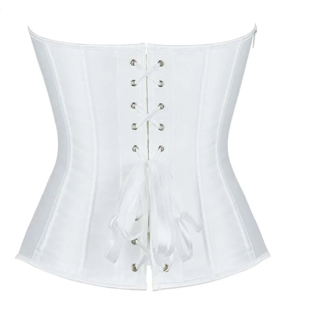 Fish Bone Supported Black White Bridal Bustier Corset Top Plus Size With Zip – White – M