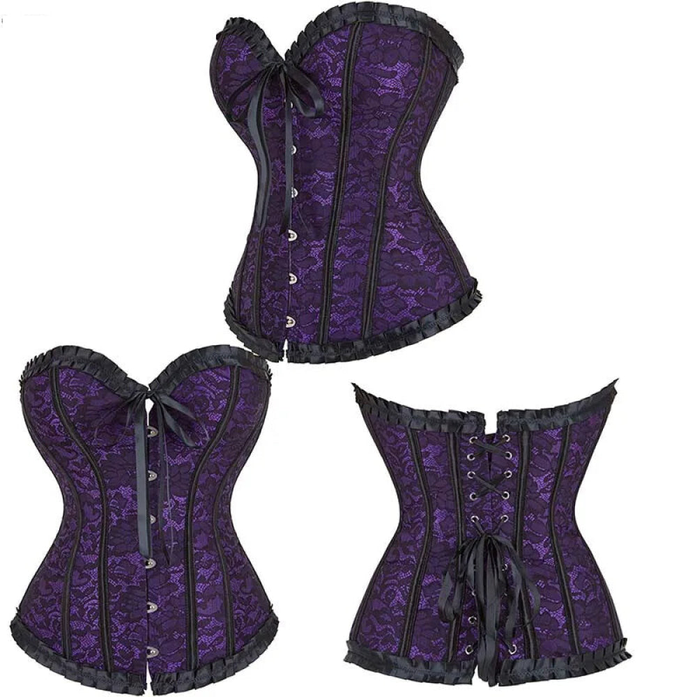 Fishbone Bow Tight Chest Binder Bustier For Gothic Dress Women 10 Red Purple Ruffled Lace Victorian Corset Top – Purple – 6Xl