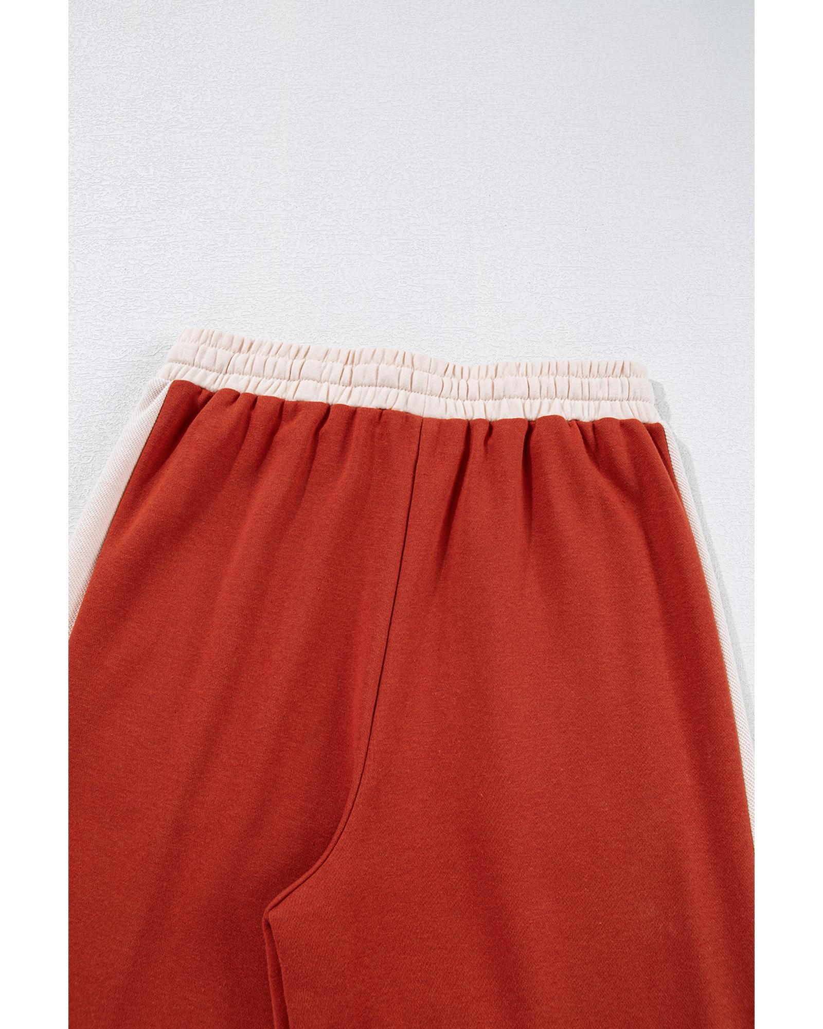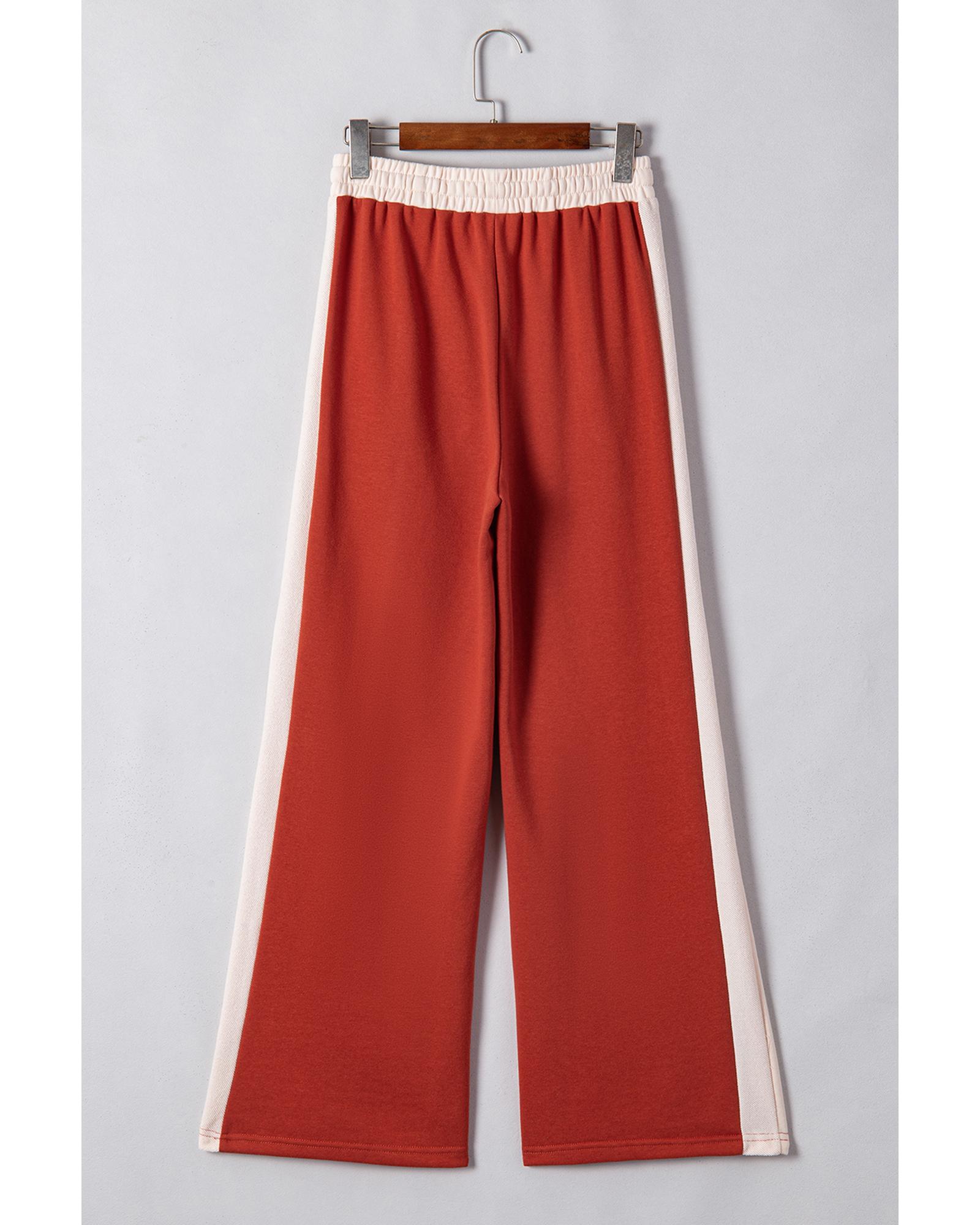 Flamingo Color Block Drawstring High Waist Wide Leg Pants – L