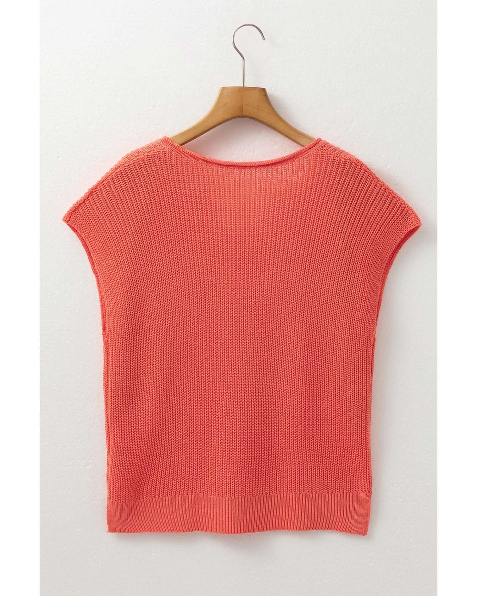 Flamingo Solid Textured Knitted Notch V Neck Sweater T Shirt – XL