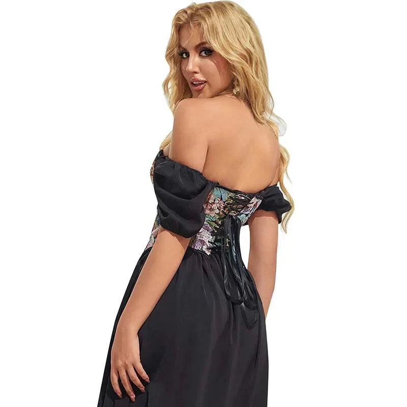 Floral Embroidered Renaissance Corset With Front Busk Closure And Back Lace Women Victorian Bustier – S