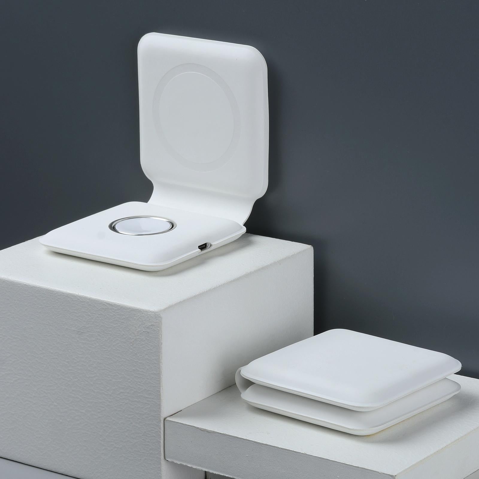 Foldable Dual Wireless Charger For Phones Iwatch Airpods – White