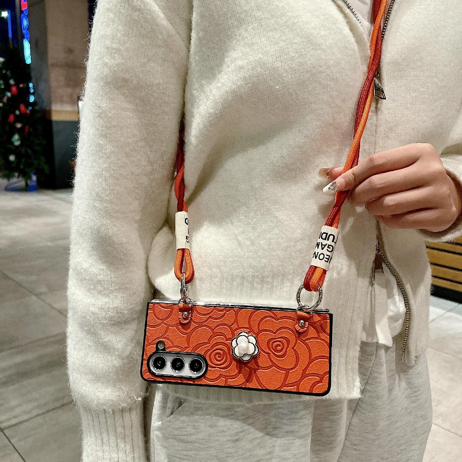 • 1 x For Samsung Galaxy Z Fold4 5G Camellia Pattern Phone Case With Lanyard