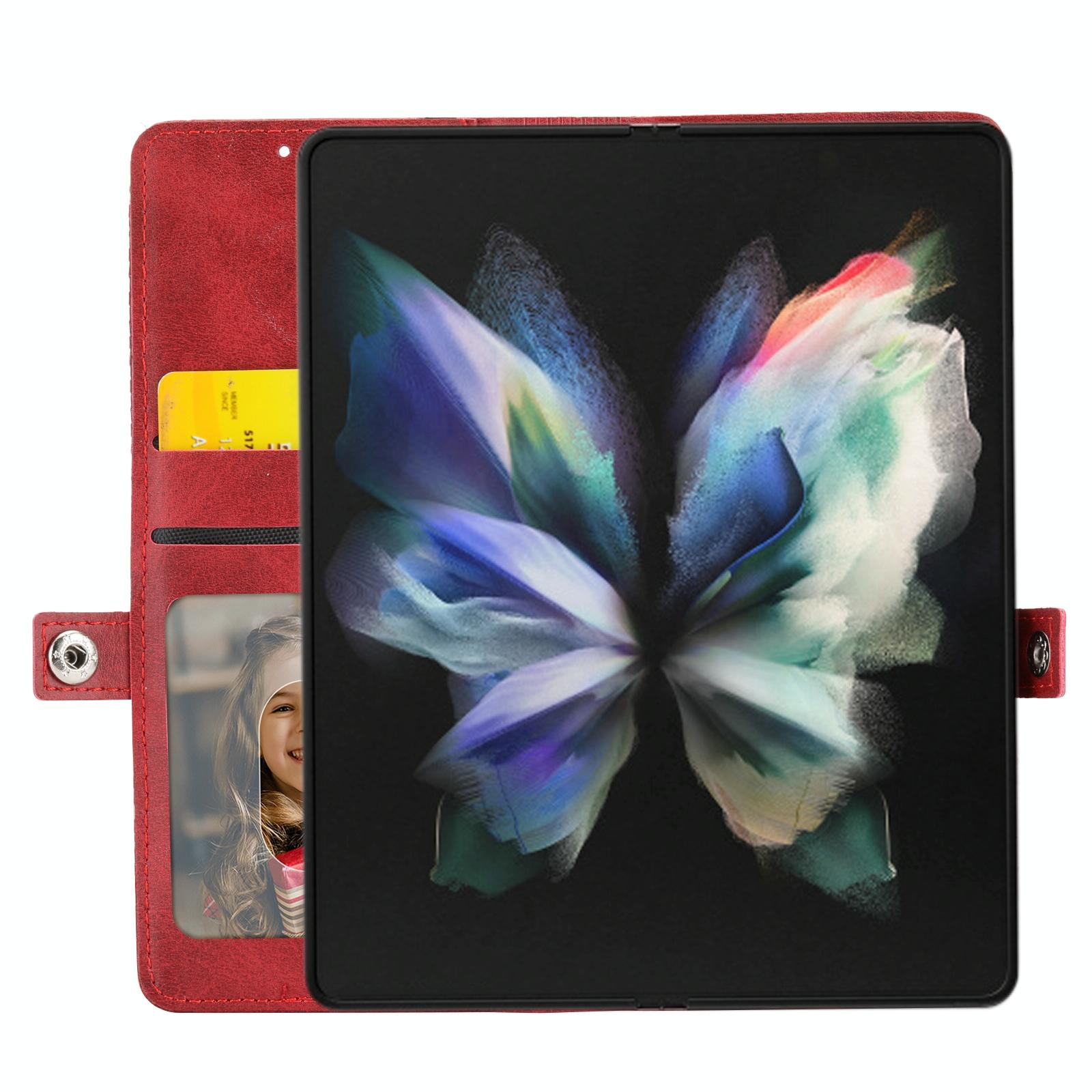 For Samsung Galaxy Z Fold4 5G Leather Grid Texture Phone Case With Lanyard – Red