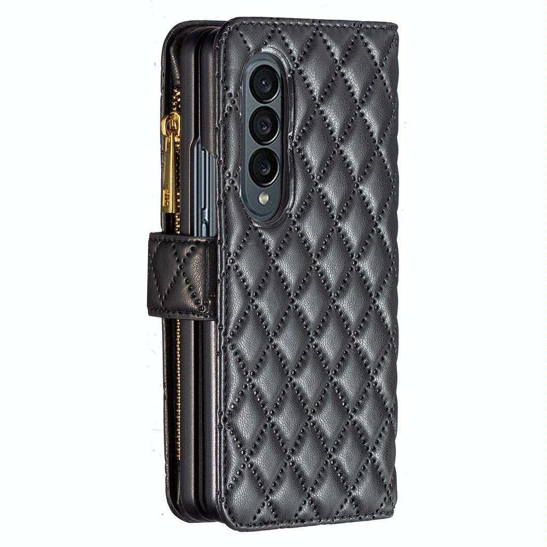 For Samsung Galaxy Z Fold4 5G Leather Zip Wallet – Diamond Lattice Design – Black