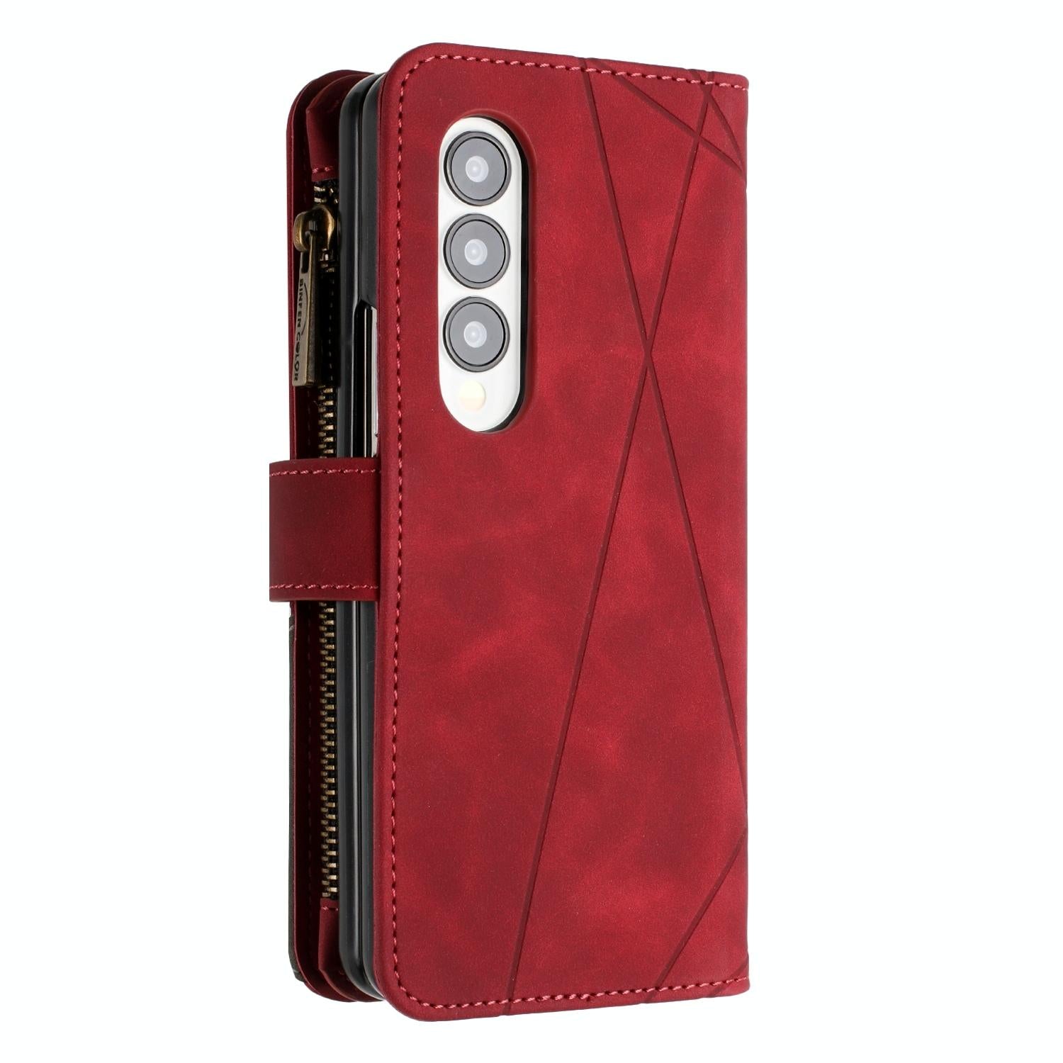 For Samsung Galaxy Z Fold4 5G Leather Zip Wallet With Rhombus Texture – Red