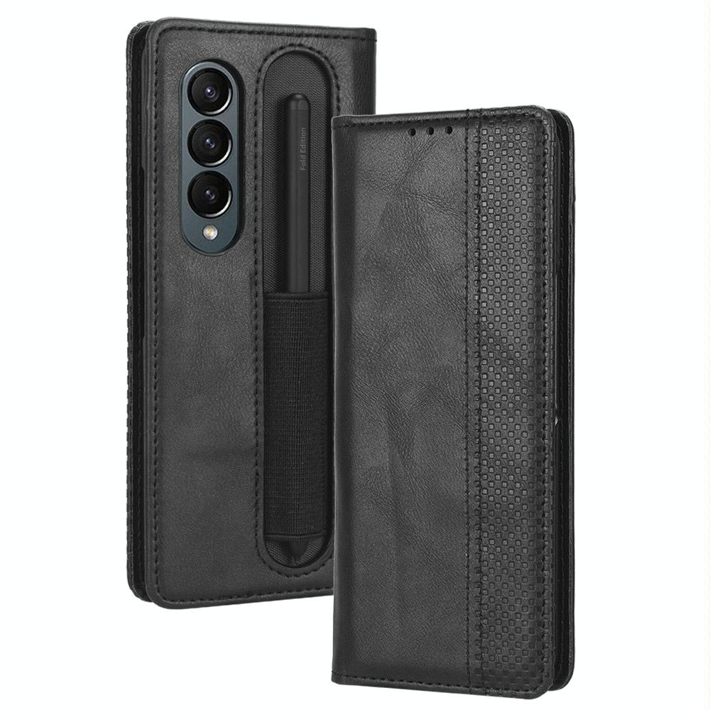 For Samsung Galaxy Z Fold4 5G Vintage Leather Phone Case With Magnetic Buckle – Black