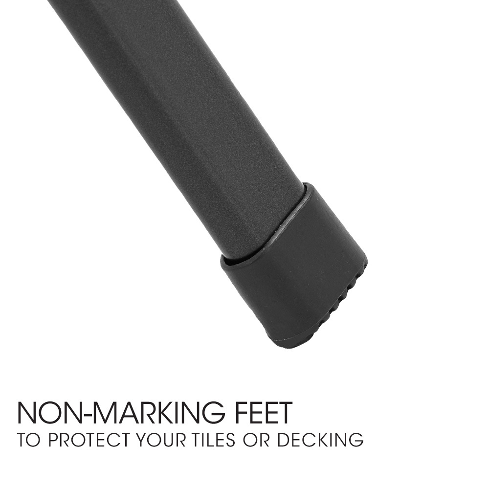 Crafted with a sturdy frame and protected by superior e-coating, they offer premium corrosion resistance and unmatched durability. Non-marking feet provide extra care for your tiles or decking.