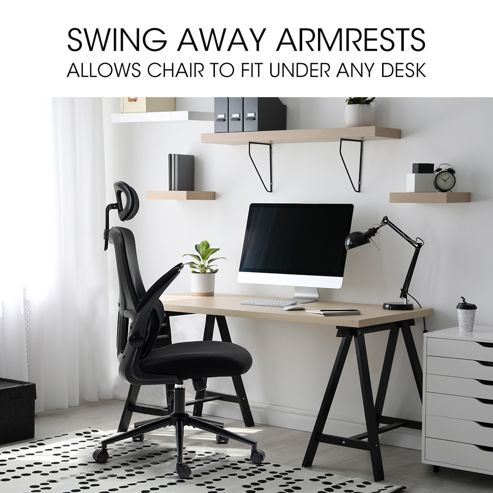 Swing up armrests ensure that you can easily fit under any desk. You can easily recline to 105° so you can relax whenever you need to. The SGS certified gas lift ensures smooth height adjustments every time, while the nylon base adds extra stability and durability – all with a weight capacity of 120kg!