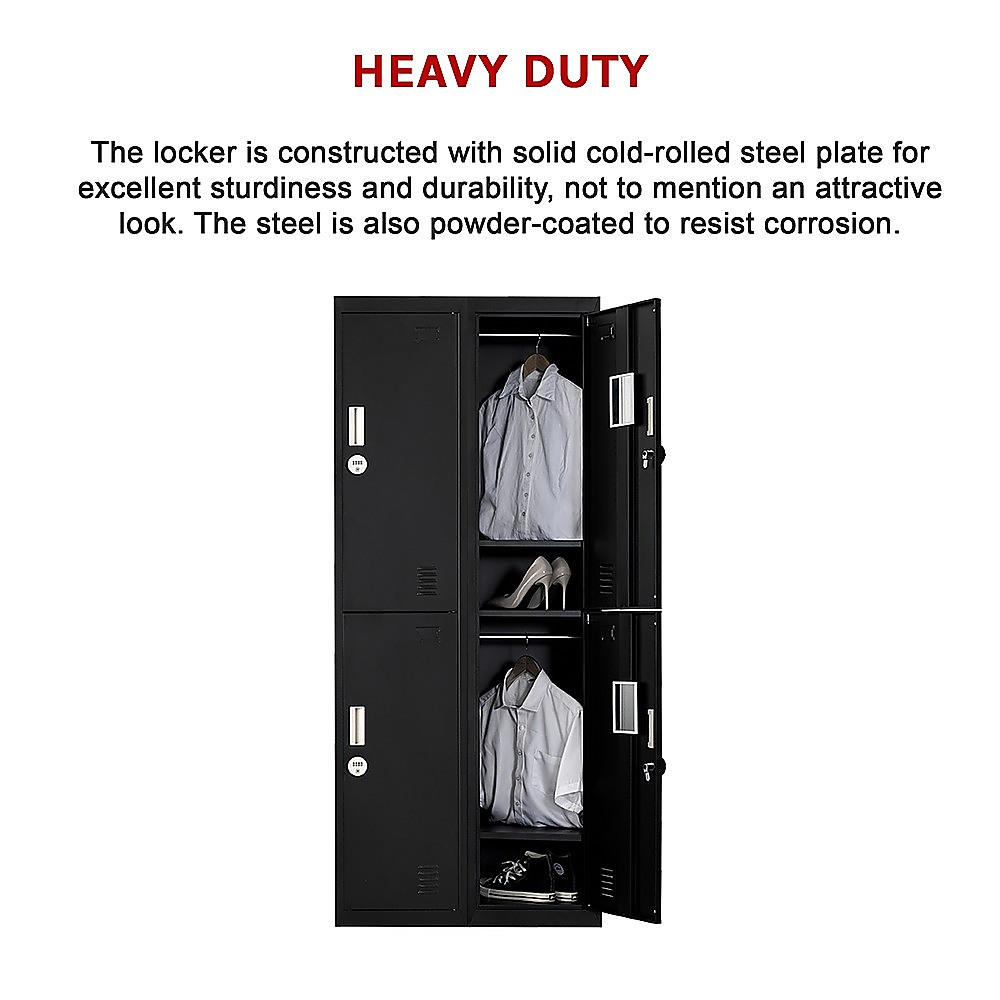 For the gym, at school, or at the office, and whenever you need extra space for multiple users, the 4-Door Gym Locker is your affordable storage solution.