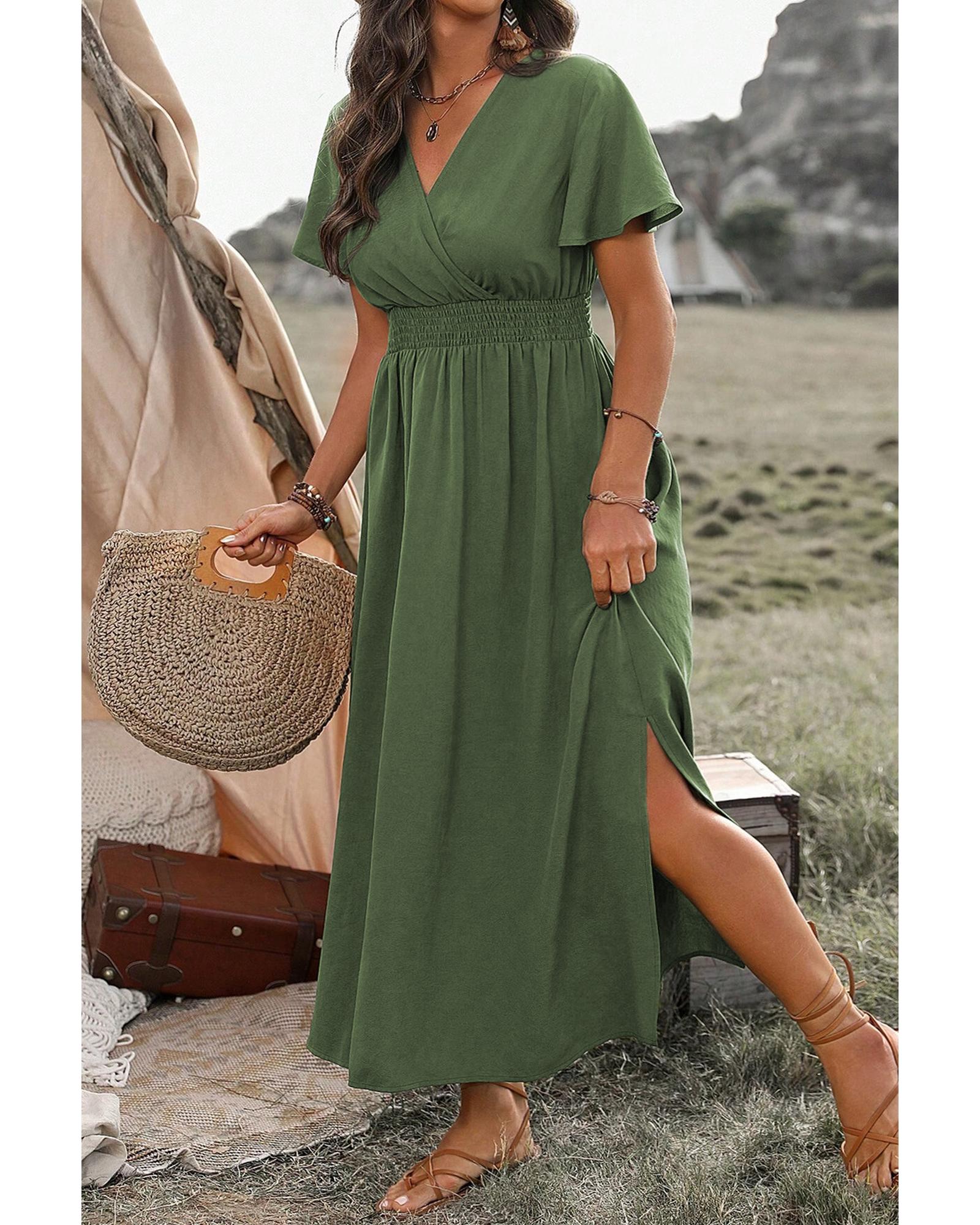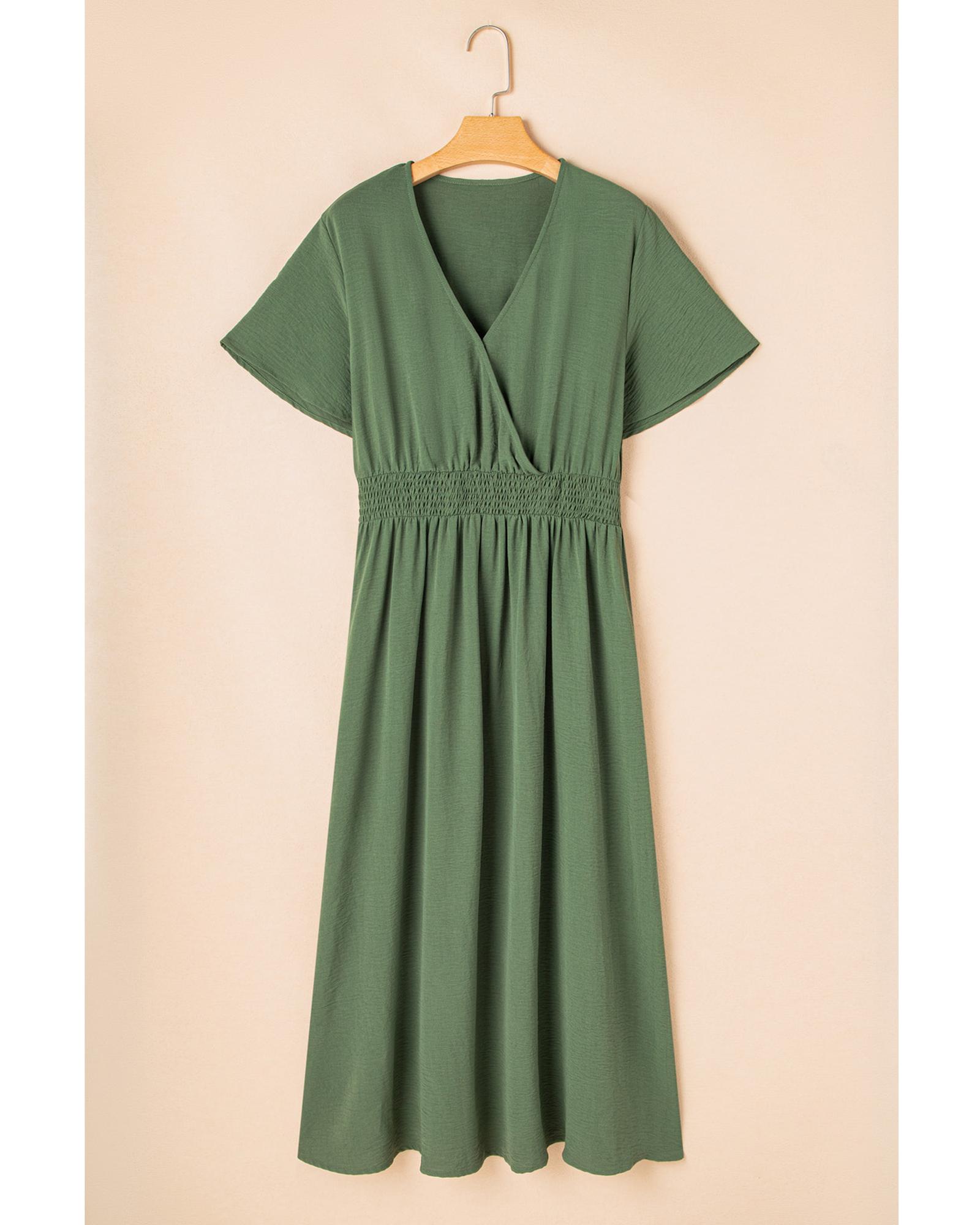 Four Leaf Clover Surplice Neckline Shirred High Waist Plus Size Maxi Dress - 3X