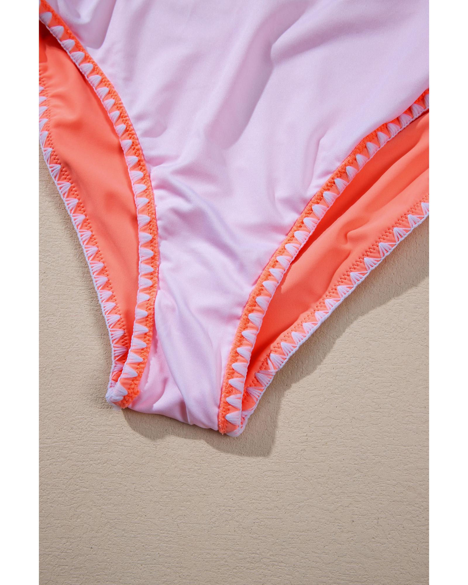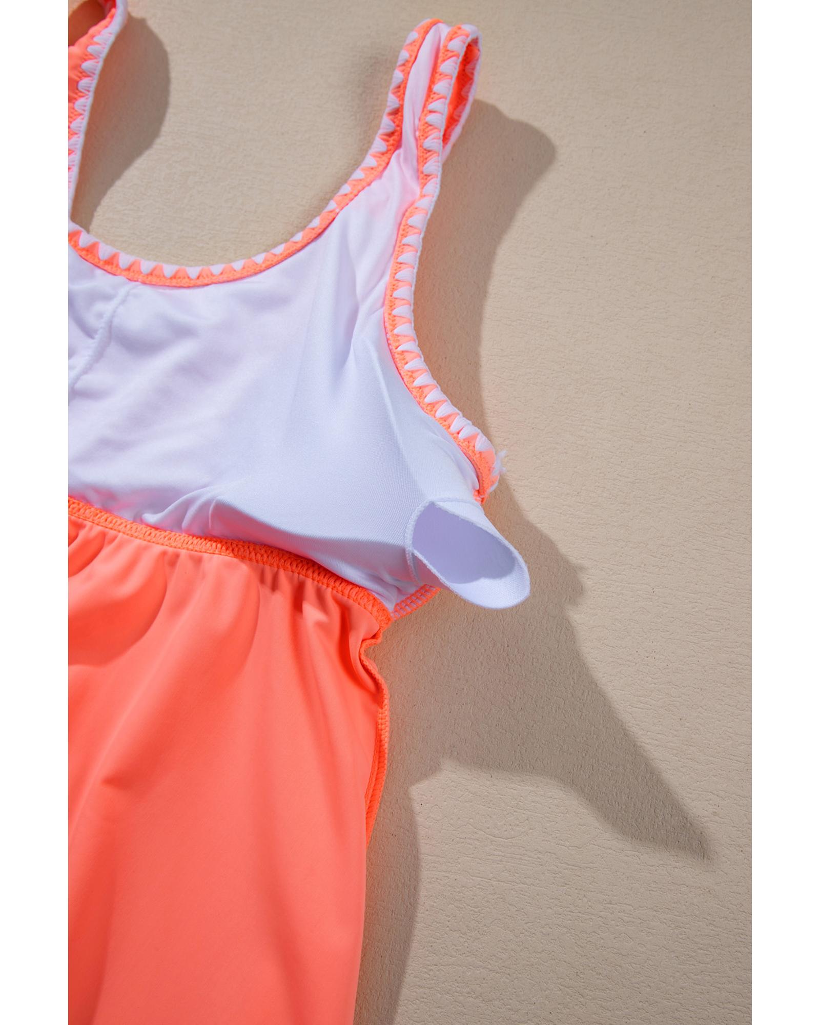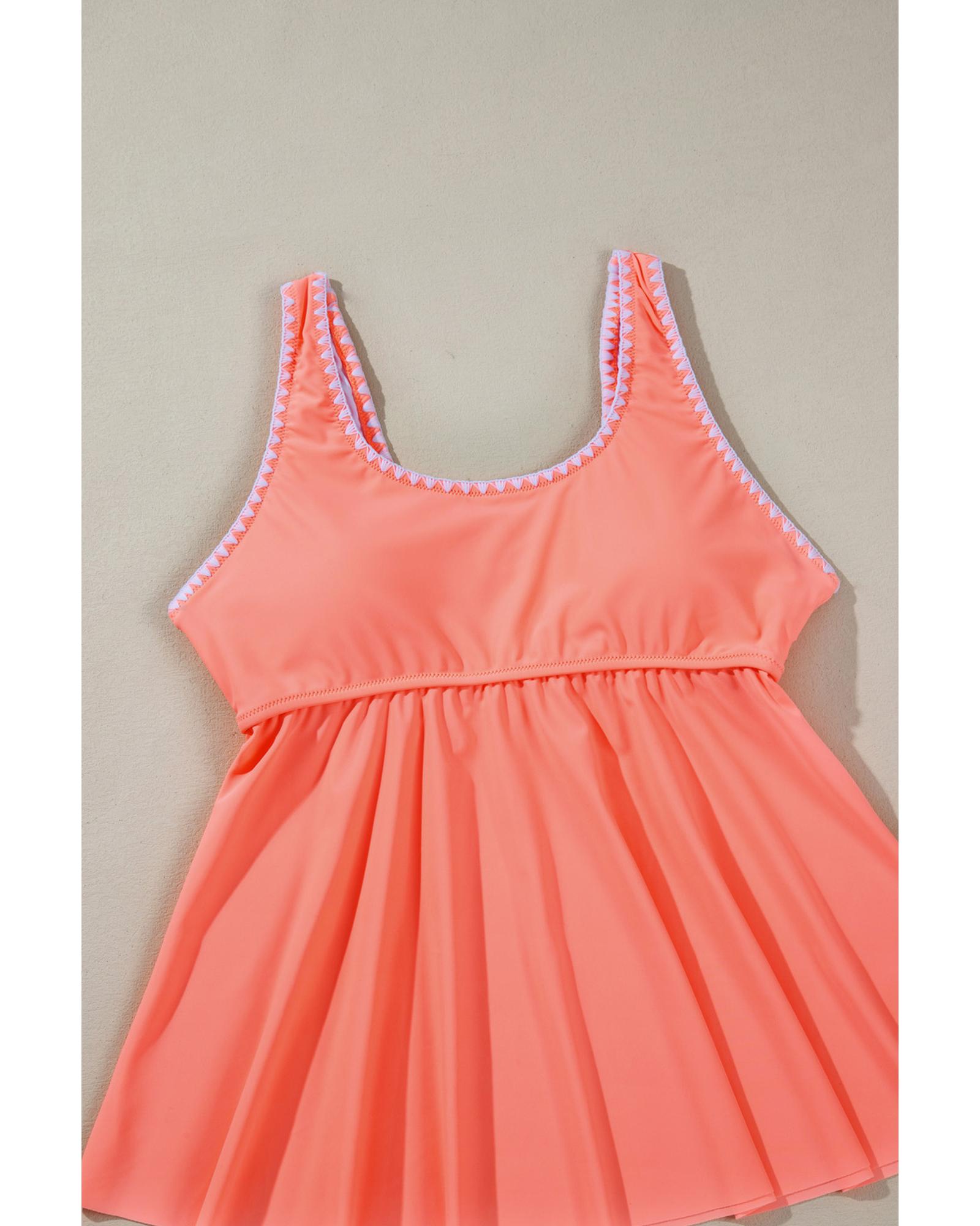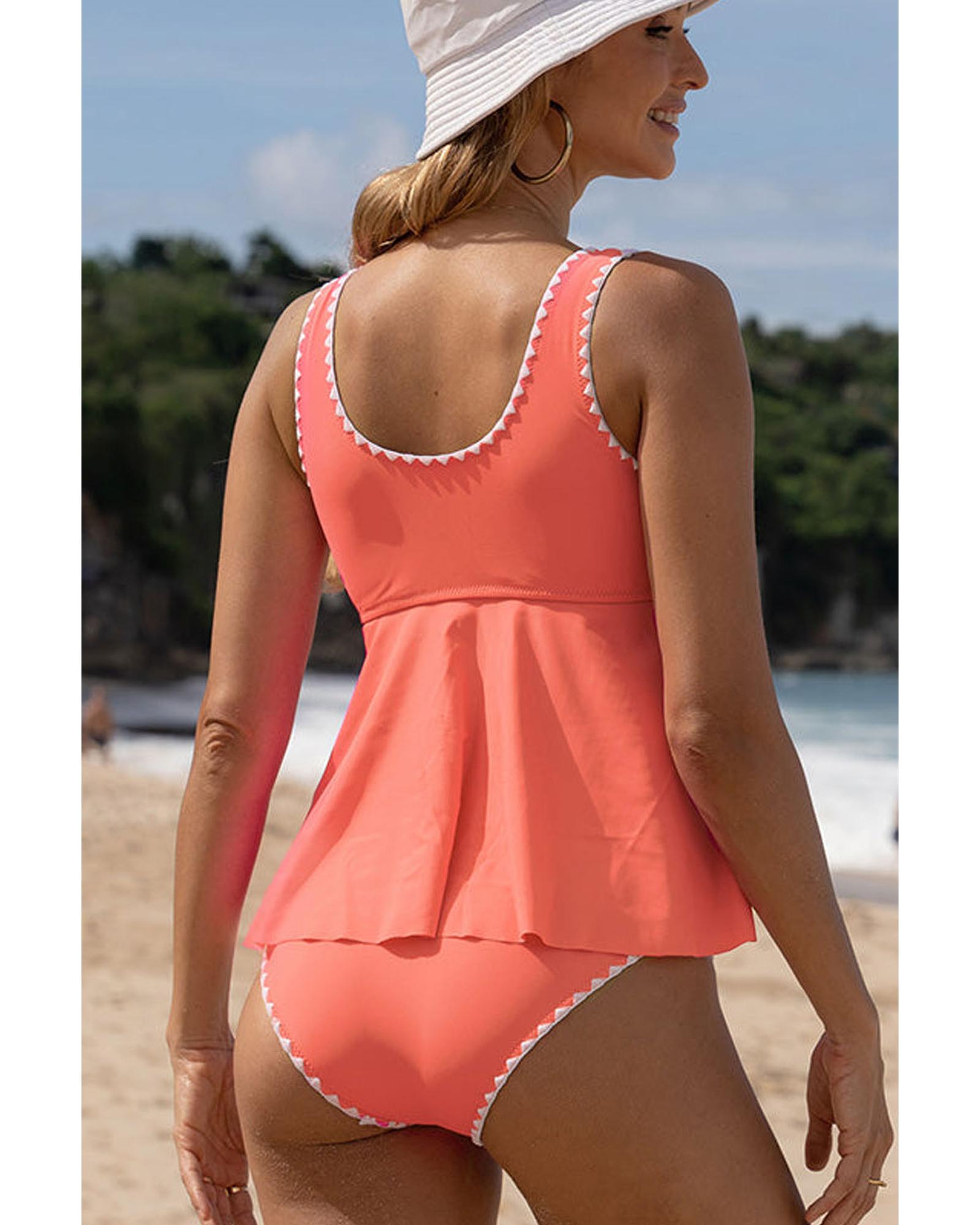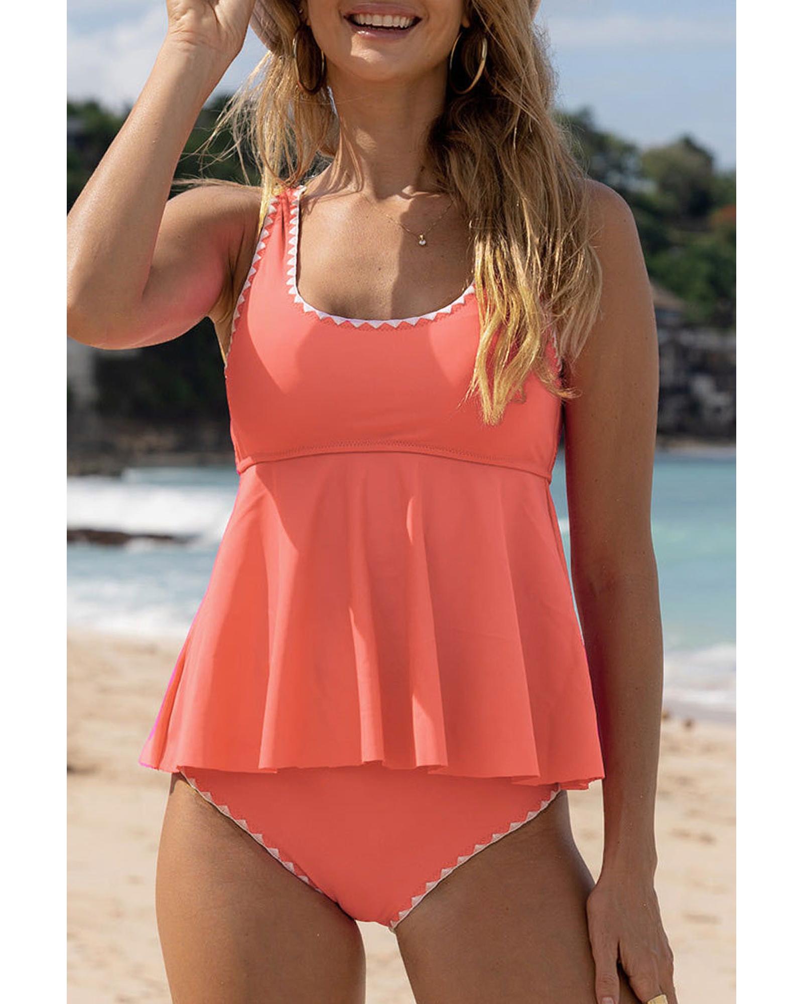 Fresh Salmon Contrast Trim Ruffled Peplum Top Tankini Swimsuit – S