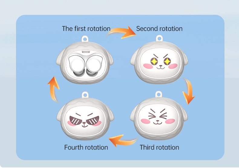 - Dynamic Rotating Face-Changing Case: Unique 360-degree rotating charging case that reveals different cute facial expressions.