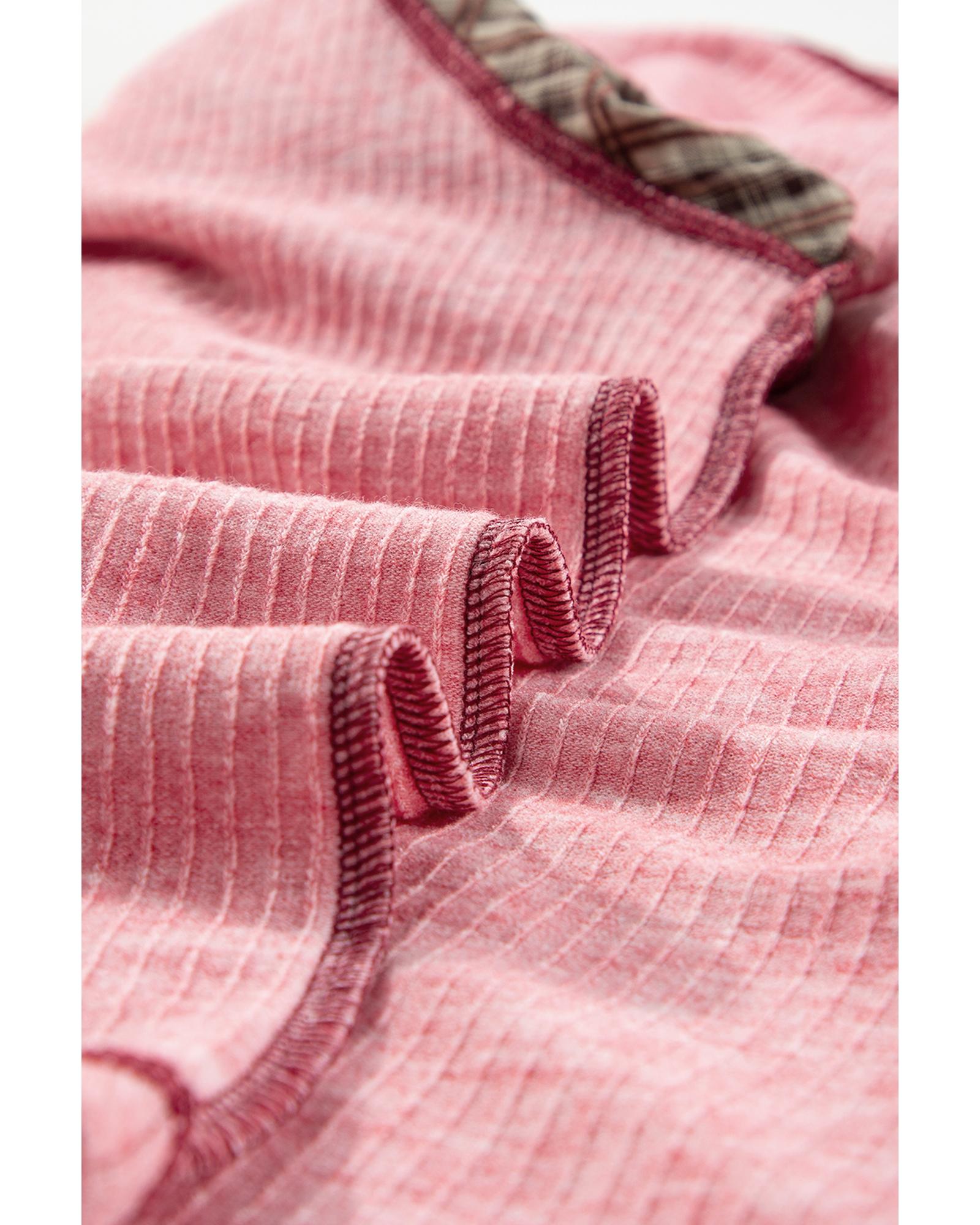 Fushia Mixed Print Raglan Sleeve Ribbed Knit Patchwork Blouse – L