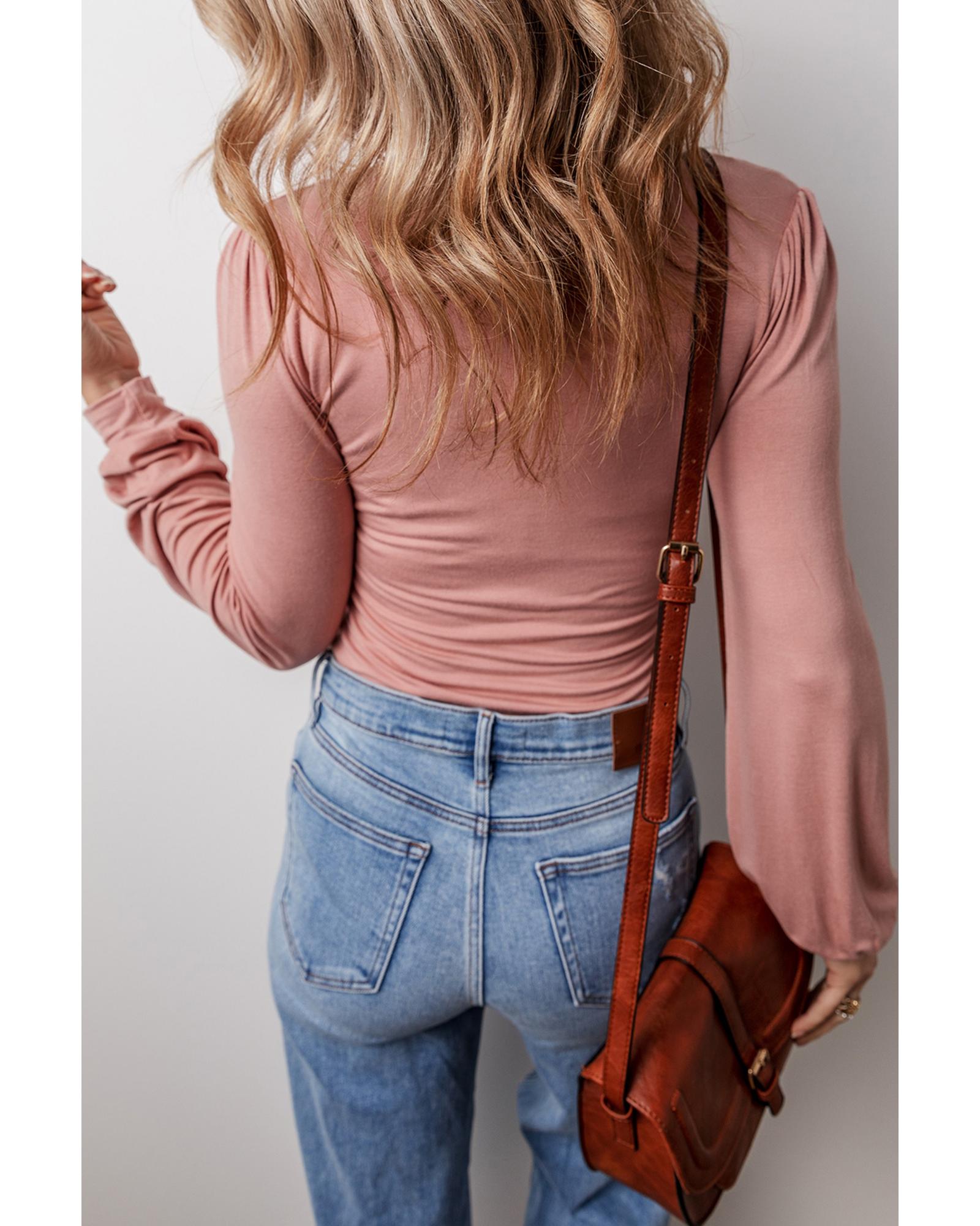 Fushia Plain V neck Long Sleeve Casual Bodysuit - M Original price was: $62.99.Current price is: $33.99.