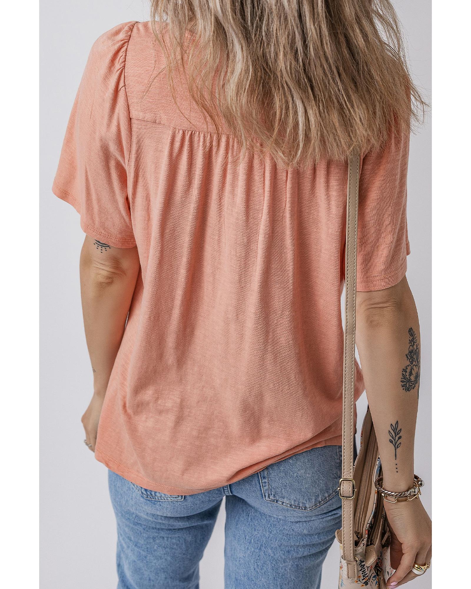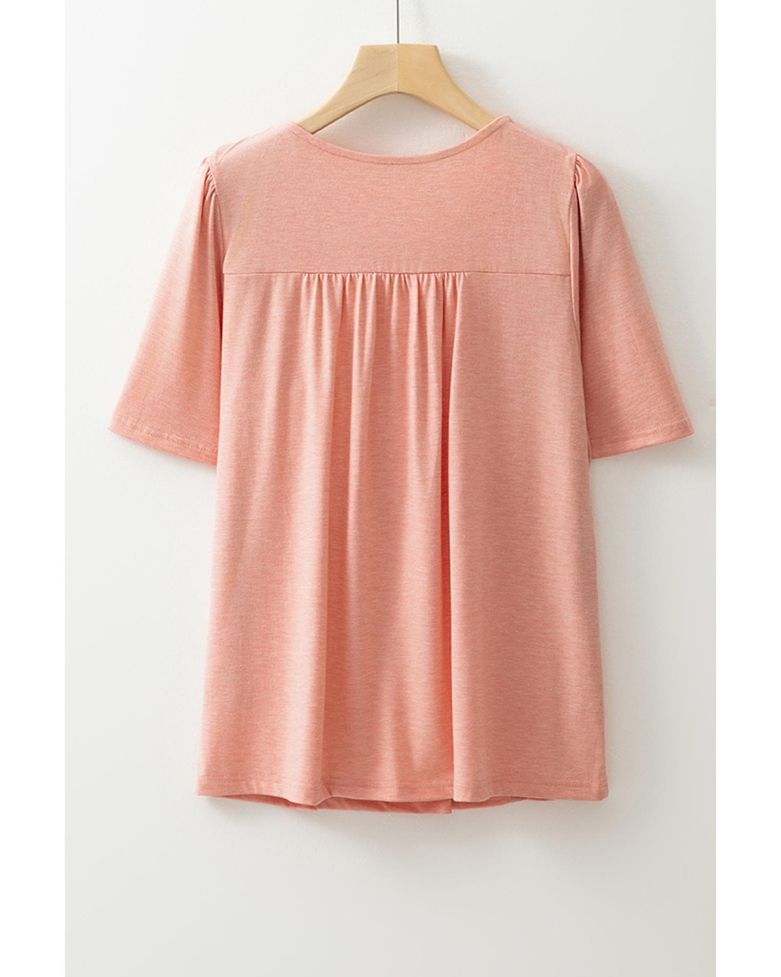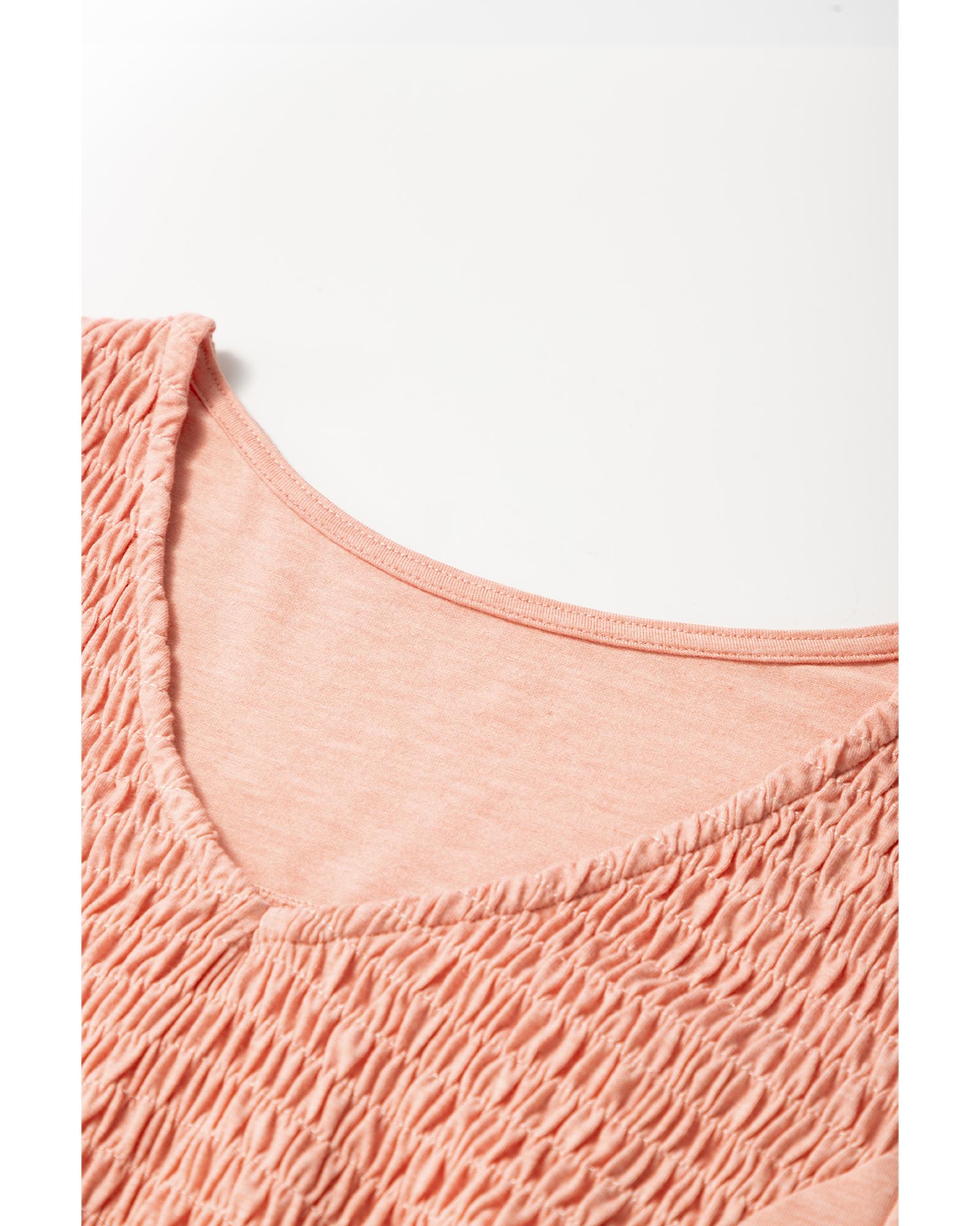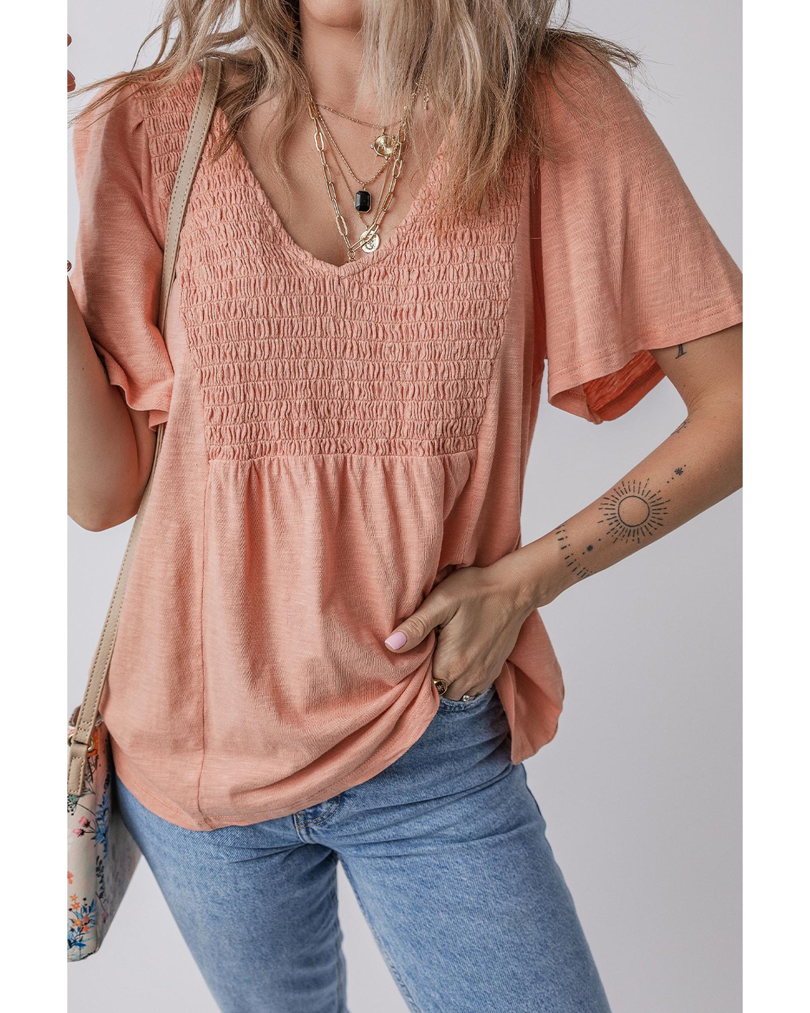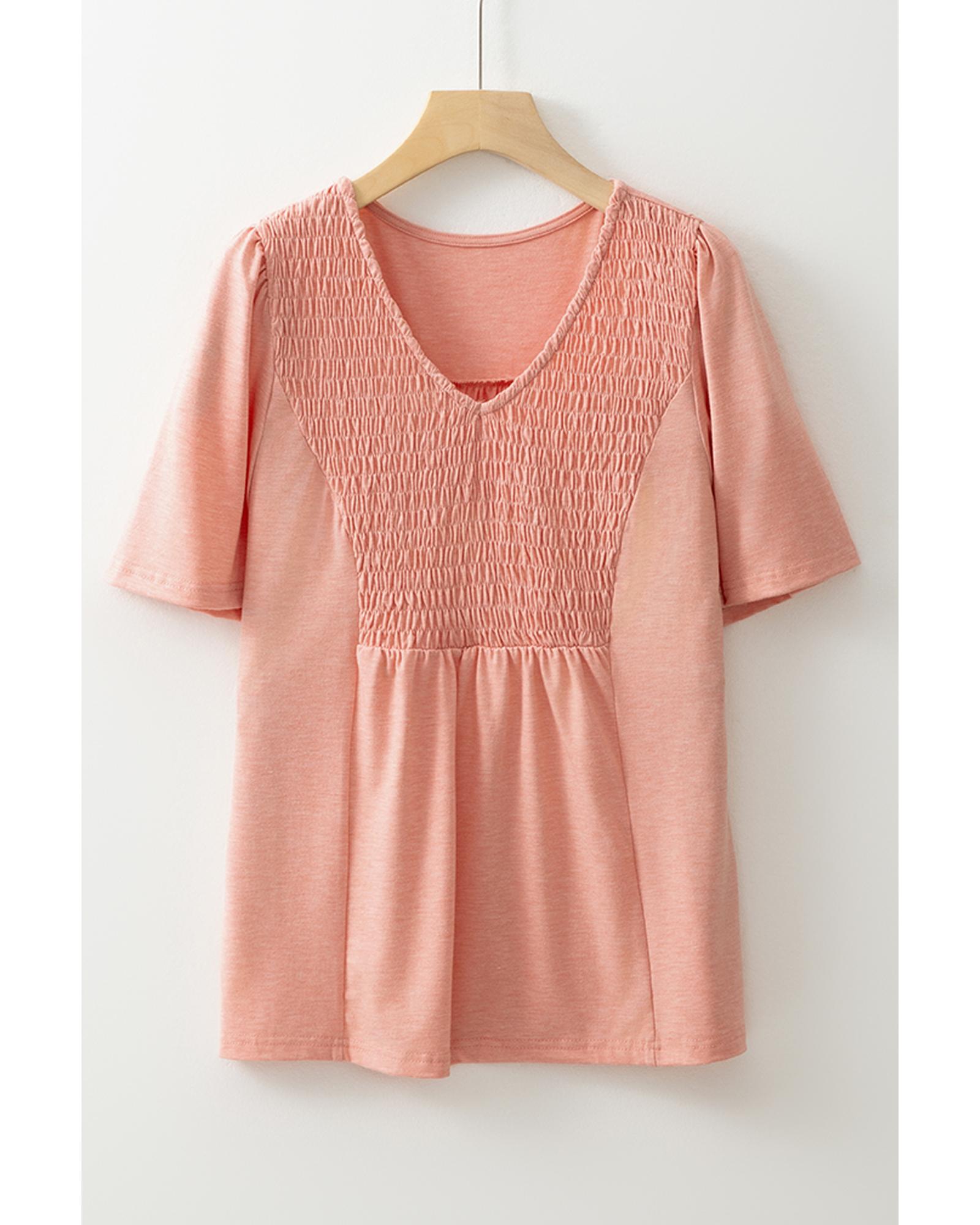 Fushia Smocked Front V Neck Pleated Babydoll Short Sleeve Top – S