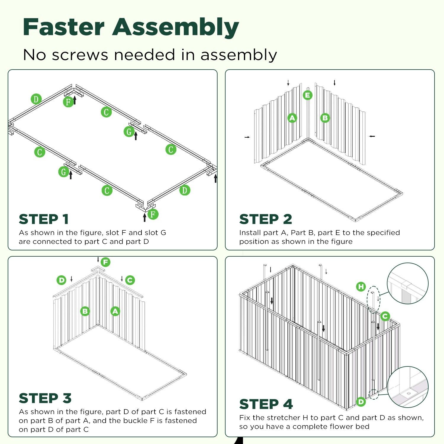 • Quick Assembly: Snap-together design; no tools required. Set up your garden in minutes!