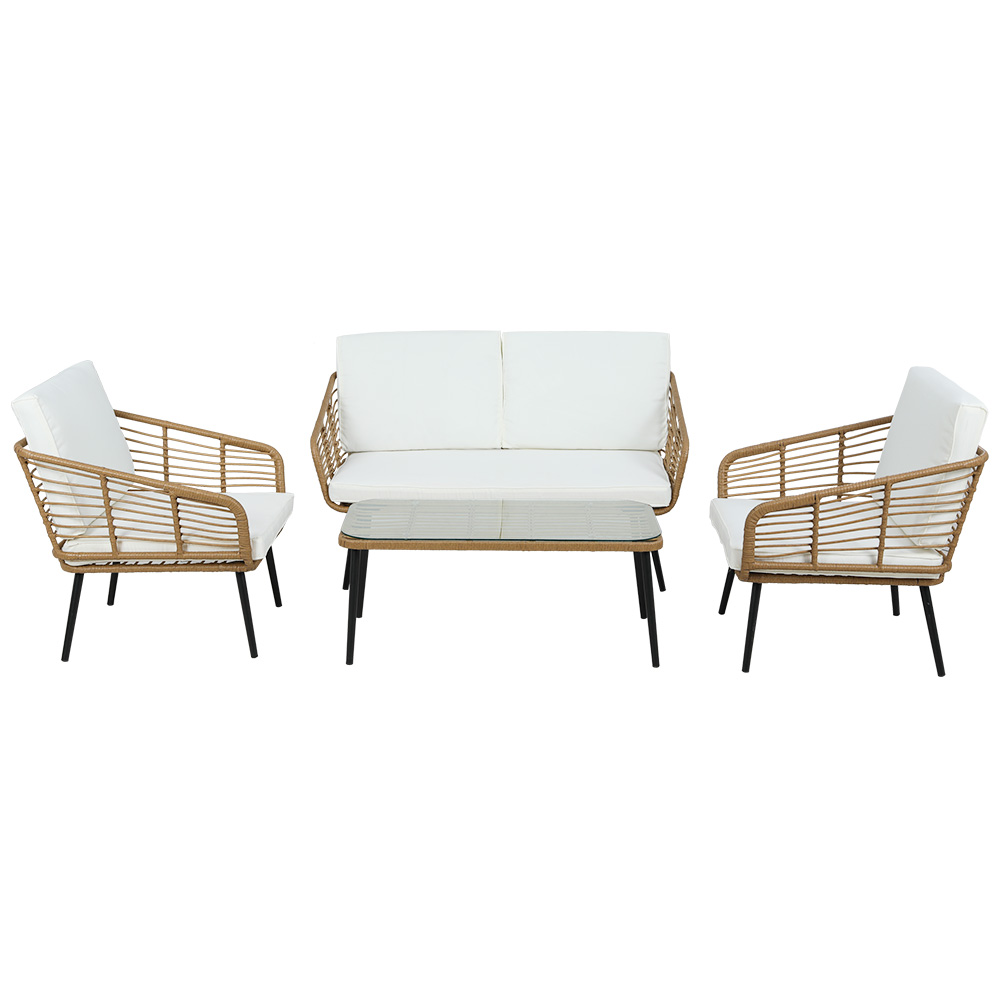 Looking to create a chic and gorgeous outdoor setting? The Gardeon 4-piece rattan outdoor lounge set is a must purchase. It will liven up your outdoor space and help you achieve an elegant space where you can enjoy day and night and summer and winter. This 4-seater set comprises of two single sofas, one 2-seater sofa, and a matching centre table. You can arrange them in multiple ways to suit your space. Its beautiful and versatile design makes it perfect for both indoor and outdoor use. All the seat and back cushions come with 8cm thickness and high-density foam padding that ensures your comfort always. Additionally, the removable cushion covers are water-resistant and UV-resistant to suit different seasons. Furthermore, our outdoor set features a lovely handwoven rattan weave for a touch of tropical charm and decorative effect, and the UV-resistant PE wicker makes this lounge set perfect for all-weather use. The large table with 5mm thick tempered glass top, non-slip suction pads, and durable powder-coated frame ensures strength and durability. This rattan outdoor set will withstand the test of time due to its durable and sturdy structure and powder-coated steel frame. You can create a praise-worthy spot with just a little creativity that will wow your guests. Shop it for your home today.