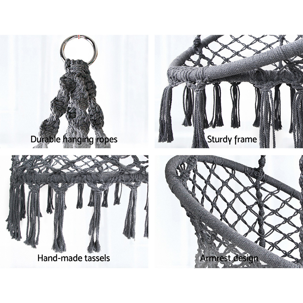 Gardeon Hammock Chair Outdoor Hanging Macrame Cotton Indoor Grey