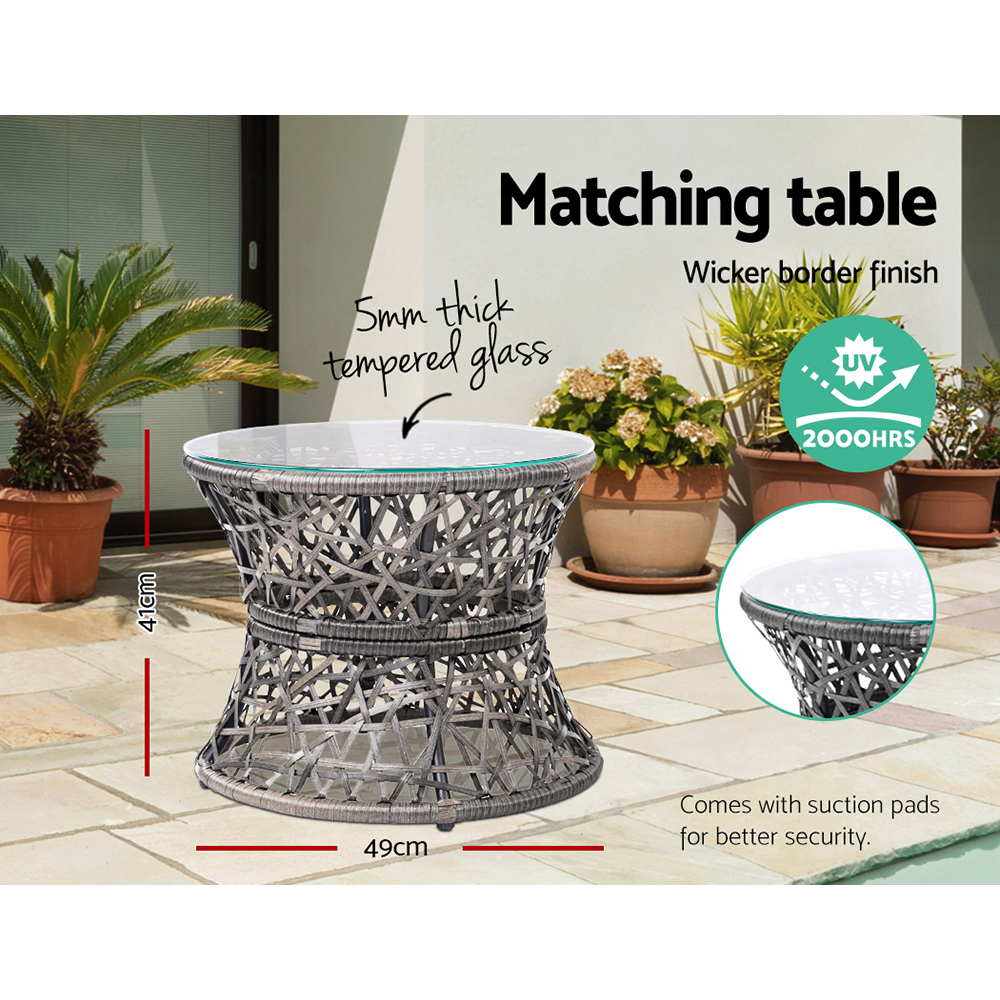 Gardeon Outdoor Lounge Setting Papasan Chair Wicker Table Garden Furniture Grey