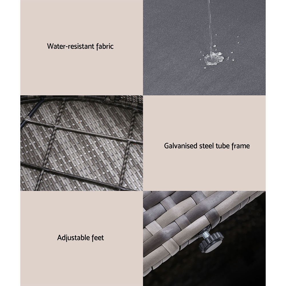 Gardeon Sun Lounge Setting Wicker Lounger Day Bed Patio Outdoor Furniture Grey
