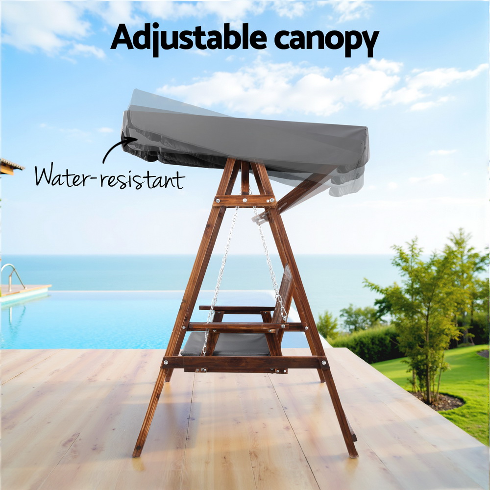 Gardeon Wooden Swing Chair Garden Bench Canopy 3 Seater Outdoor Furniture